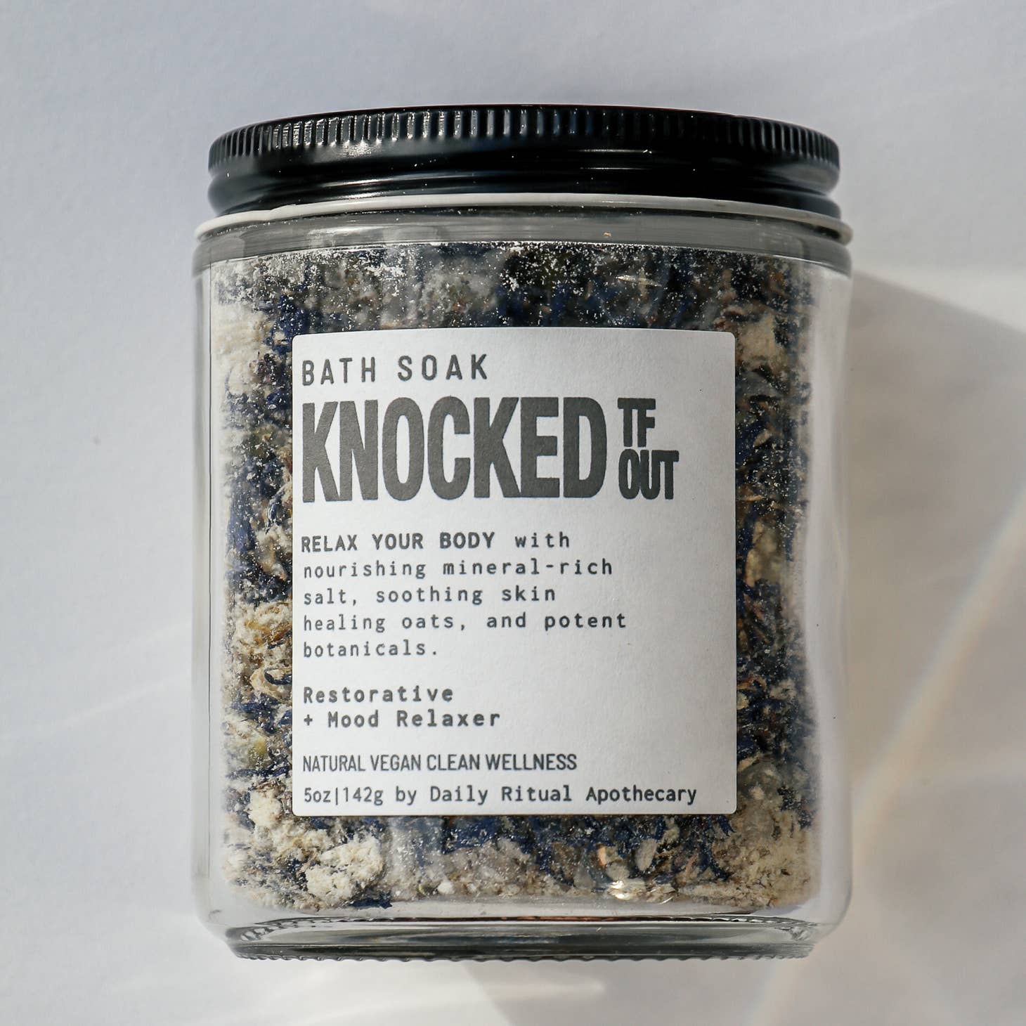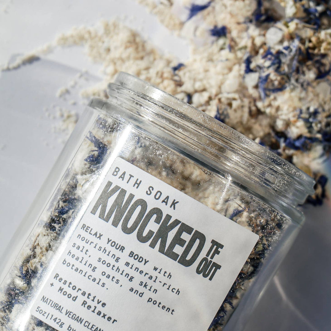 It’s nice to relax and let your troubles melt away. Our Knocked TF Out Bath Soak is like a warm hug for your body. It has a blend of lavender, chamomile, and valerian root designed for deep relaxation. With oats to help soften and soothe your skin.