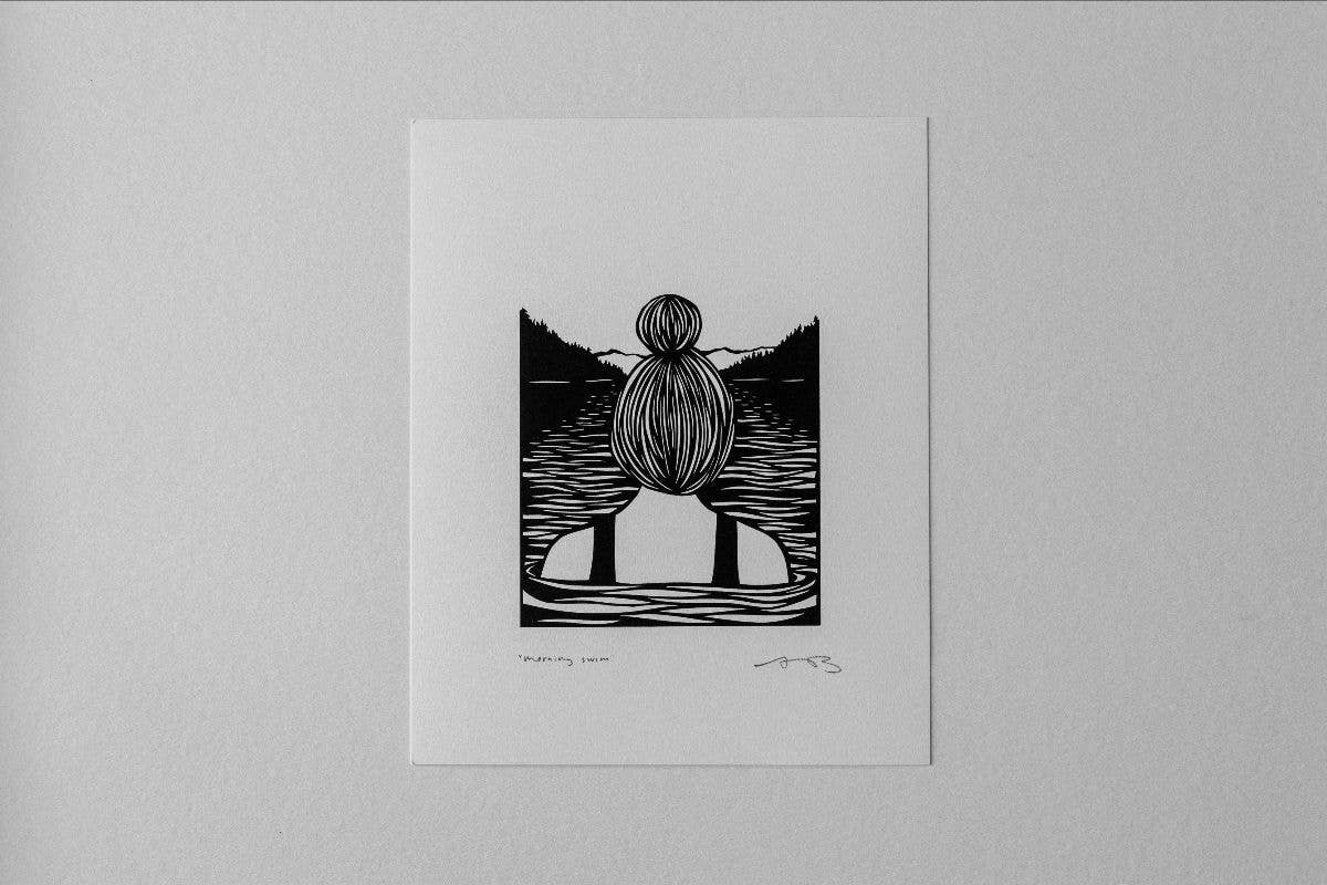 An 8x10" signed print of the original "Morning Swim" papercut, made in honor of sacred mornings in the water.
