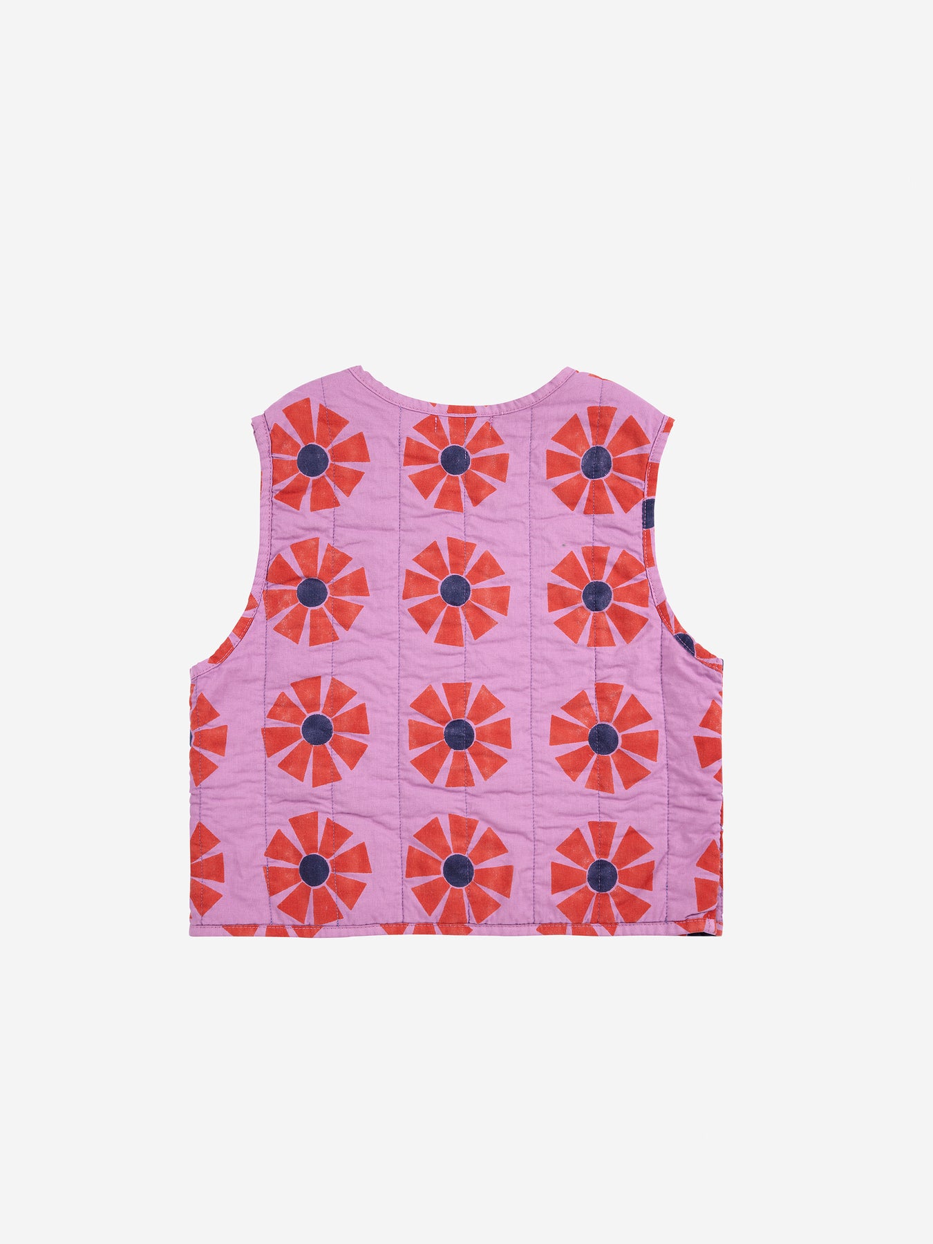 Designed with sleeveless, front snap fastening, embroidery, cotton lining, quilted padded and relaxed fit.