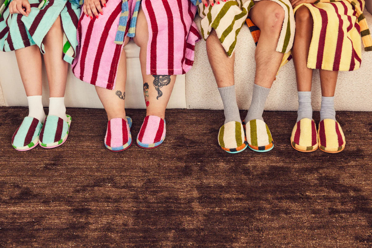 430 GSM, 95% Cotton & 5% Polyamide. Sole is foam-filled with a PVC base.