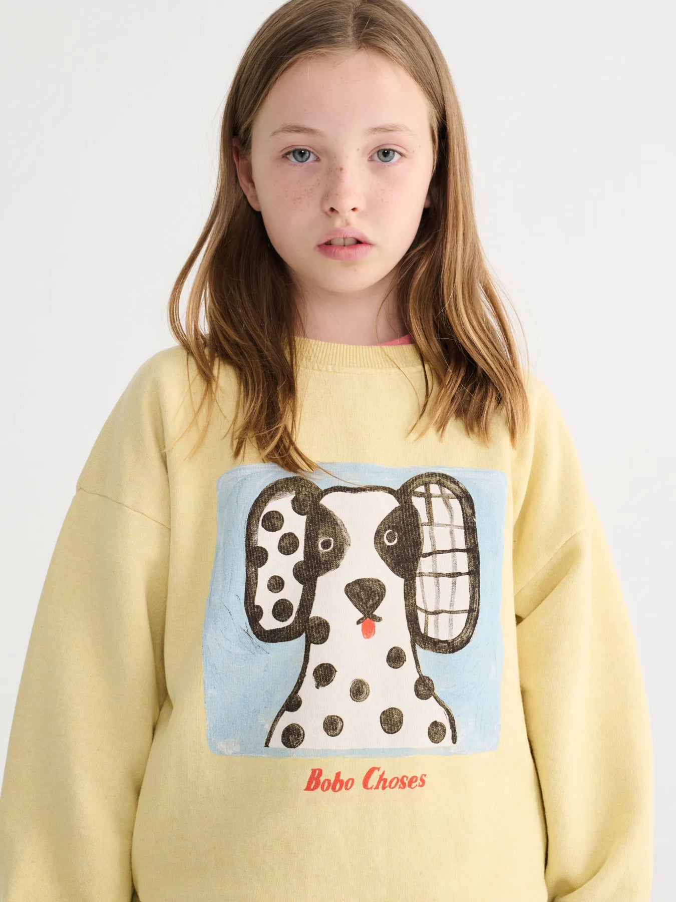 Yellow sweatshirt. Designed with ribbed cuffs, loose fit, ribbed bottom, round neck and fleece.