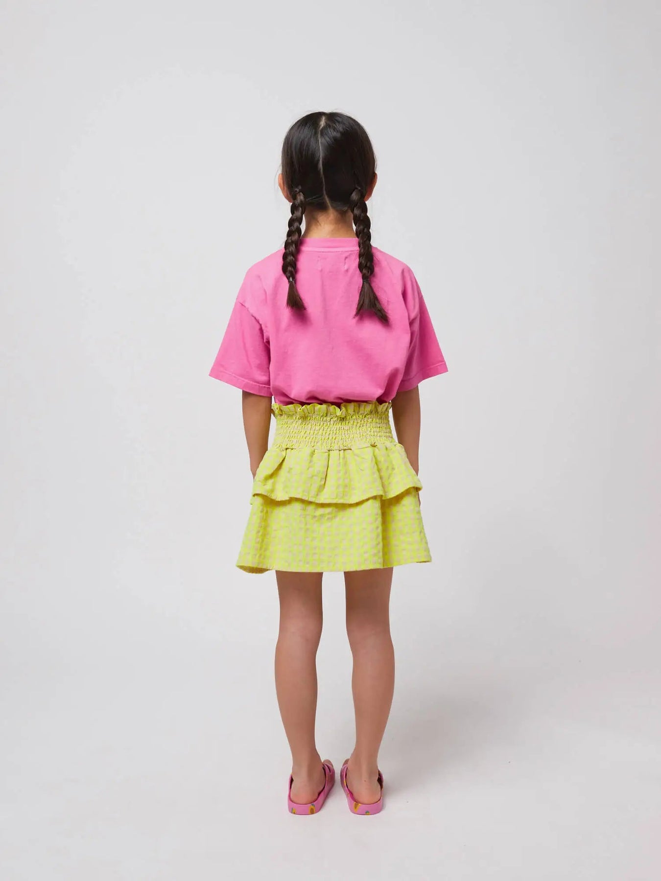 Bright and whimsical, this multicolor skirt is designed for a playful touch. Made from 60% cotton and 40% recycled polyester with a seersucker weave, it features an elasticated waistband, gathering details, and embroidery. An evasé fit, smocking stitching, and mini length complete the design. Responsibly made in Spain.