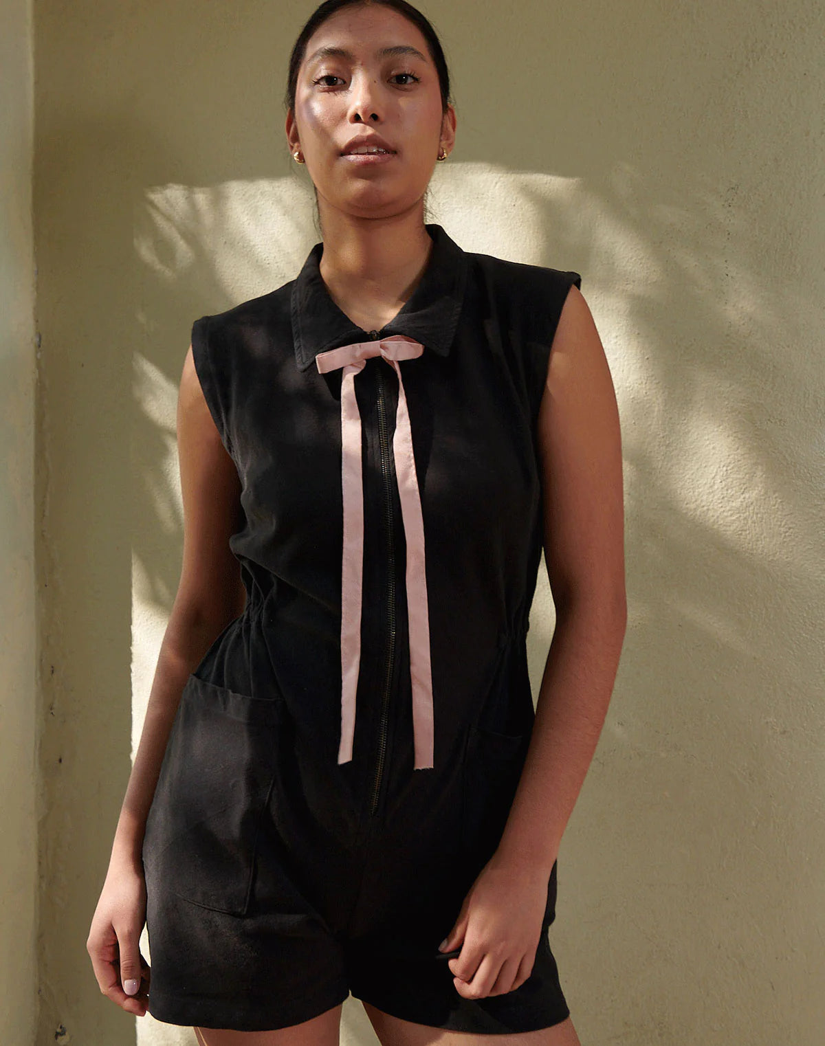 The one-and-done Sleeveless Utility Romper you're going to want to rock all spring and summer. Made out of our signature 100% organic pima cotton canvas that is soft and durable. Featuring a quick and easy zipper on the front and two front pockets to carry your essentials. Style on its own or layer with our waffle top.