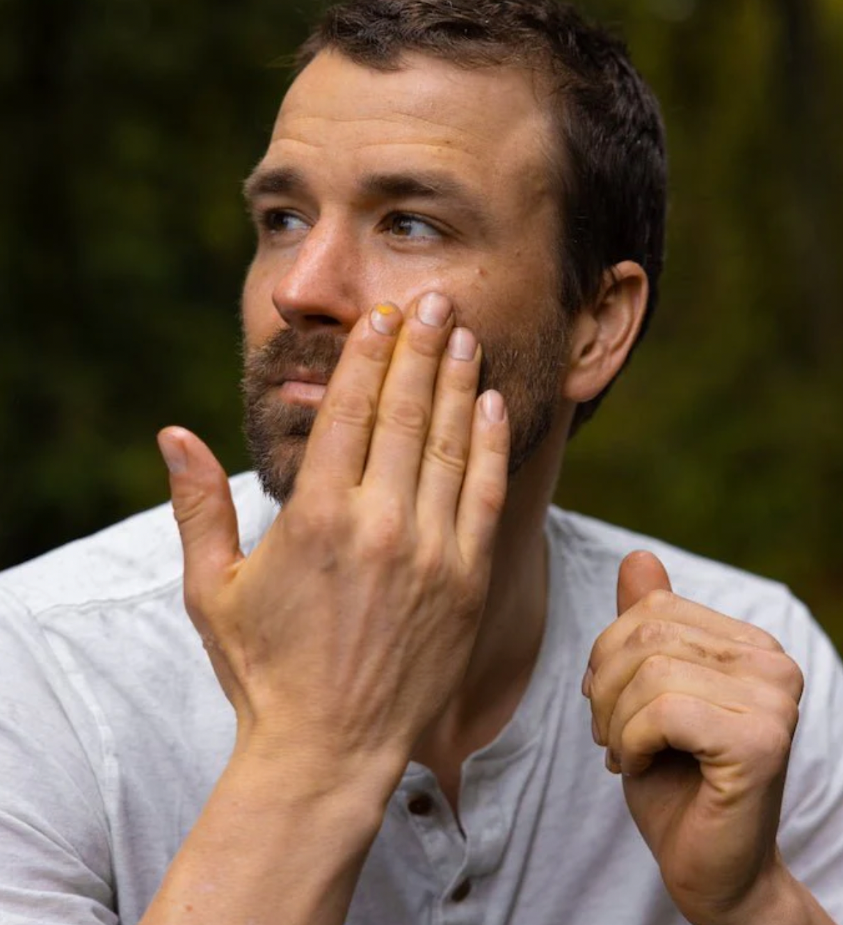 Olive oil is good as an antioxidant and moisturizer, shea butter has anti-inflammatory and collagen-boosting properties and beeswax has anti-viral & anti-bacterial compounds and pomegranate seed oil for anti-aging.