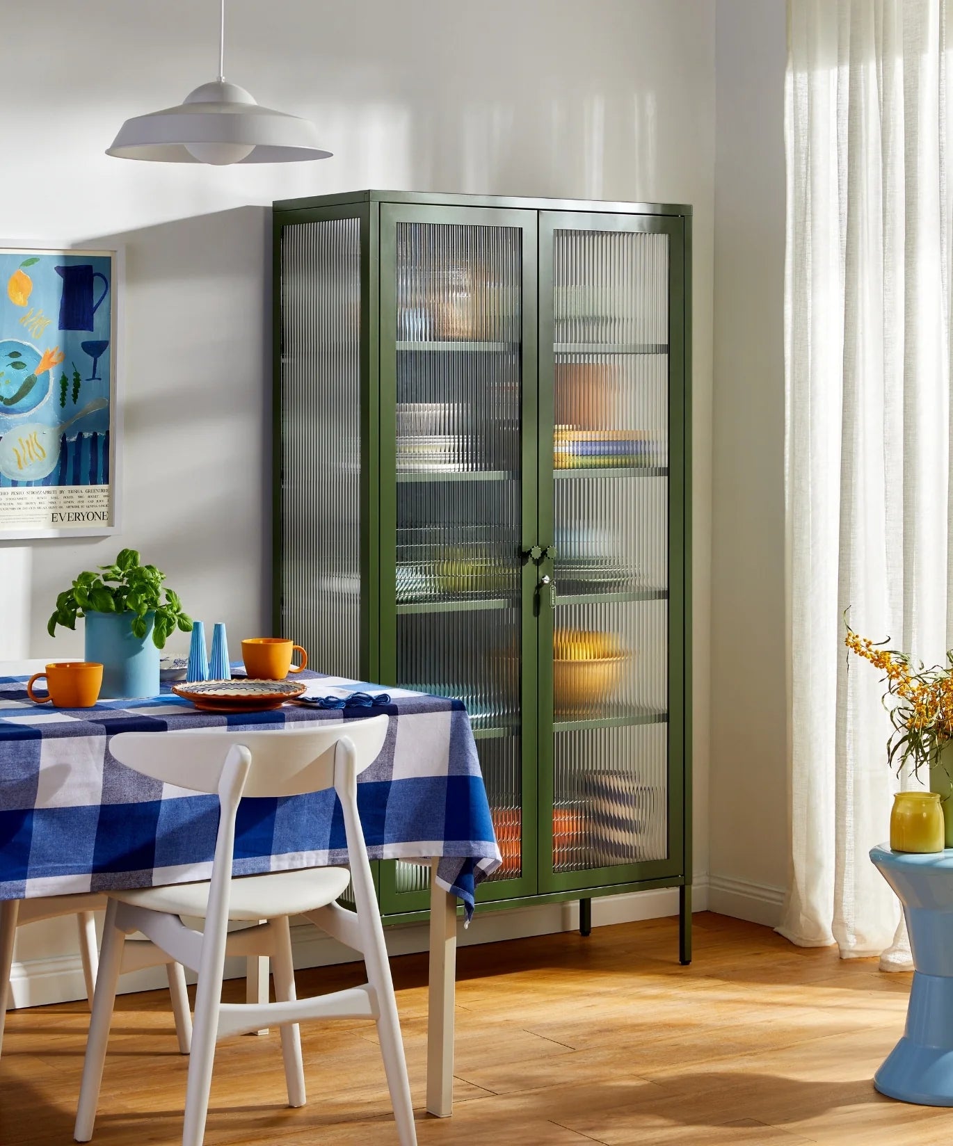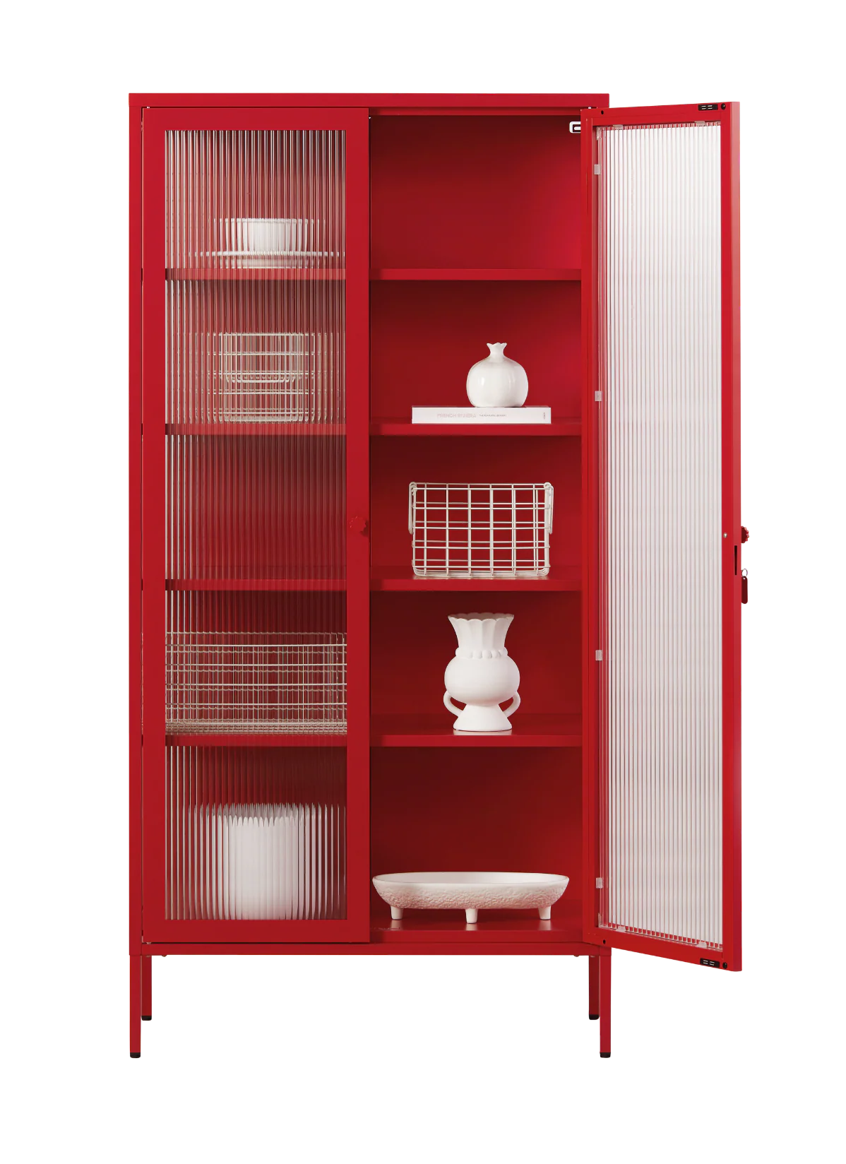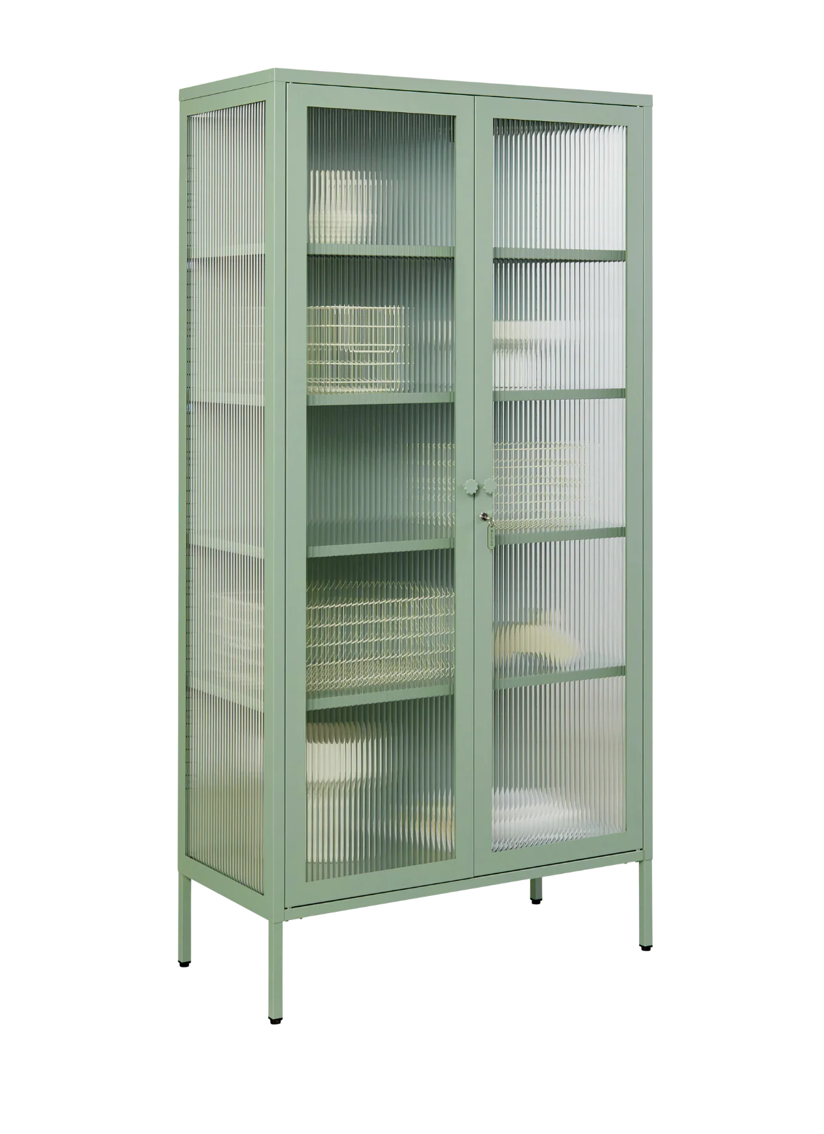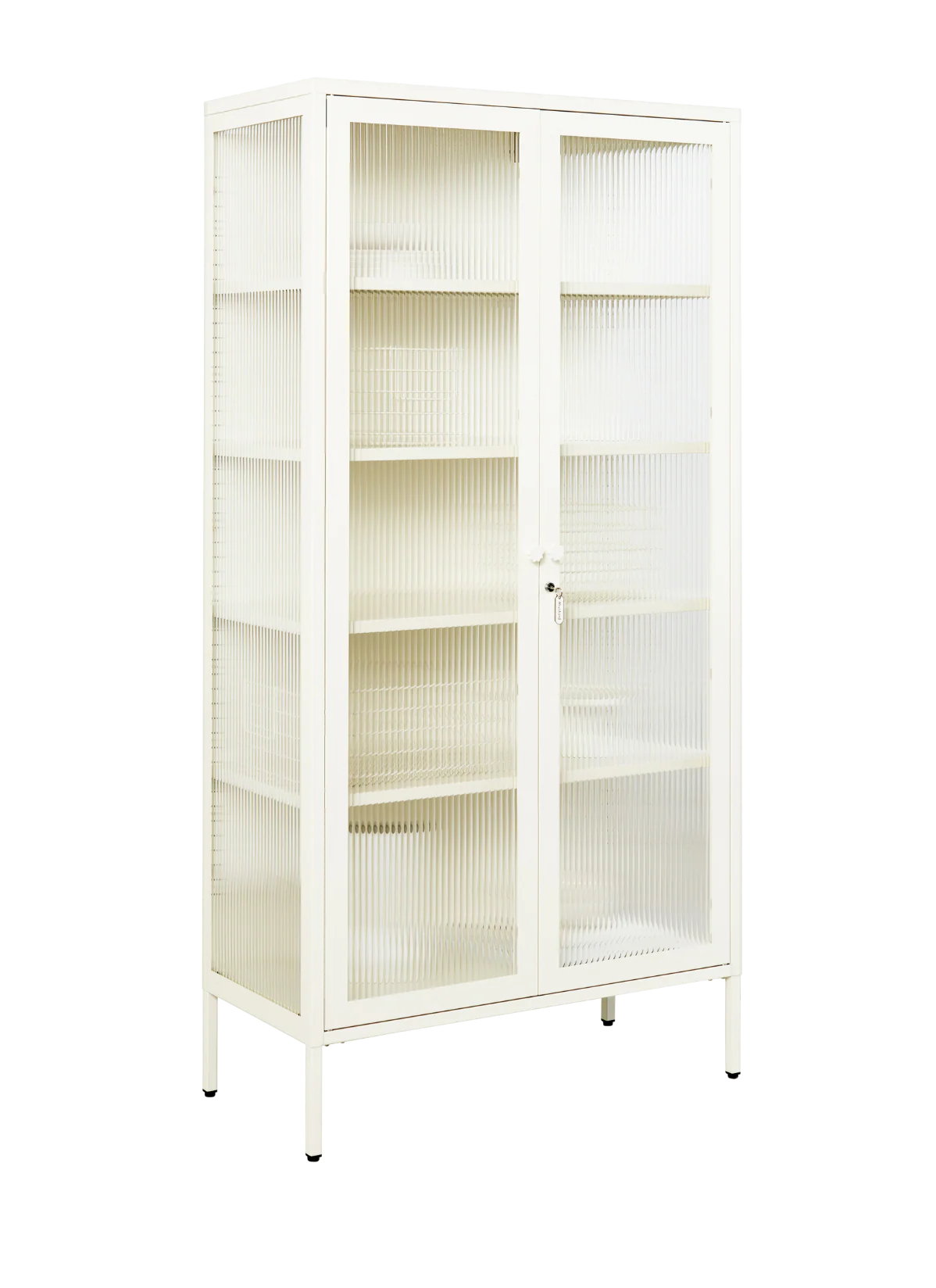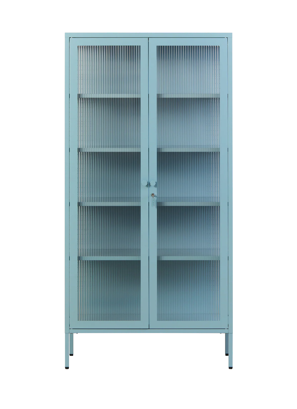 Inside, you'll find four adjustable shelves, a door bolt and a subtle embossed 'mustard', to let you know it's the real deal. Outside, fluted glass panels are set in a metal frame with medallion handles, a lock, a custom Mustard enamel keyring and adjustable feet.