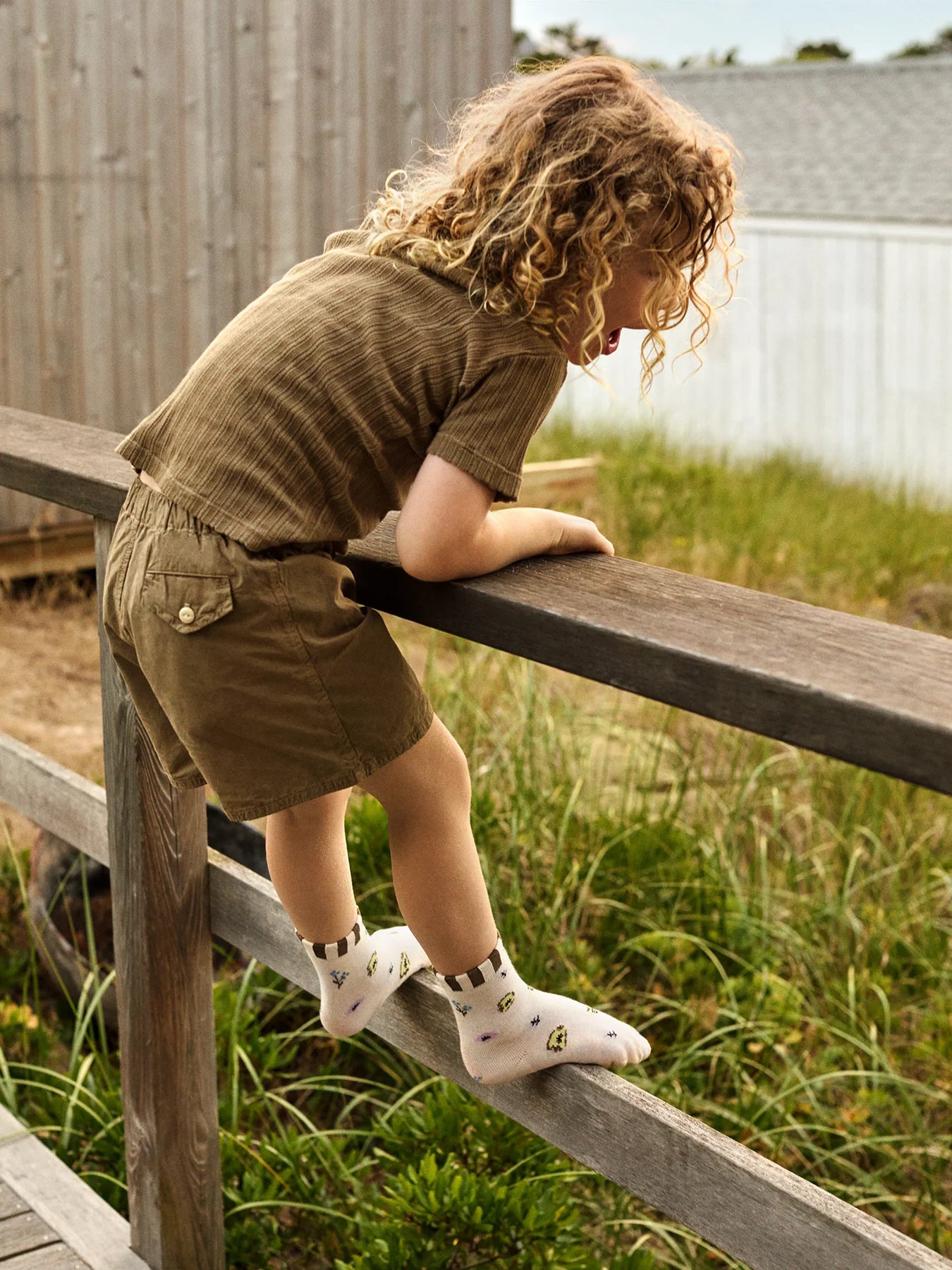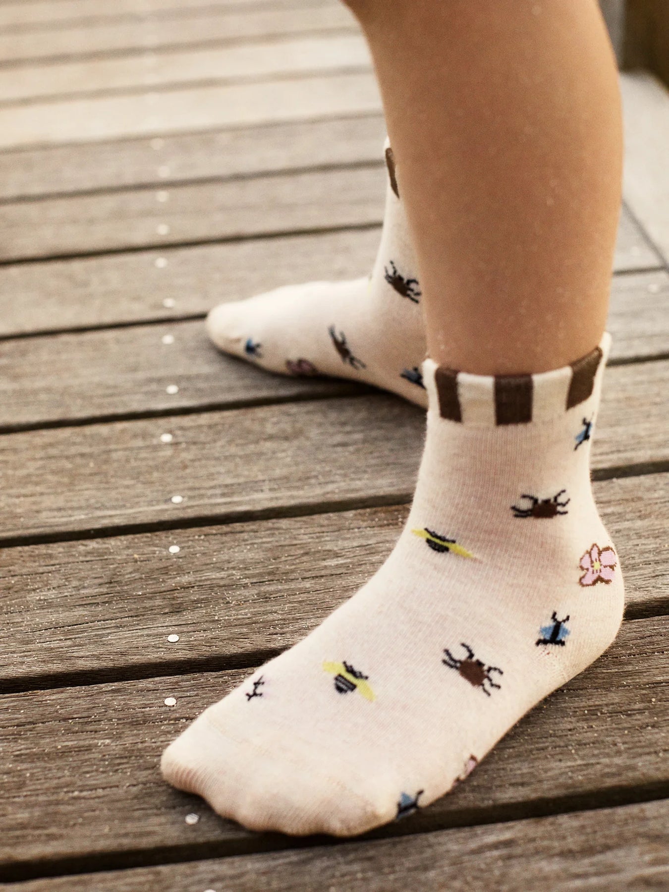 Your feet will step right into summer with a pair of these sweet socks. Insects and flowers mingle together in celebration of the new season! Each soft combed-cotton sock is sustainably made in Portugal at a family-run factory that operates entirely on renewable energy and Oeko-Tex certified for bonus pizazz.