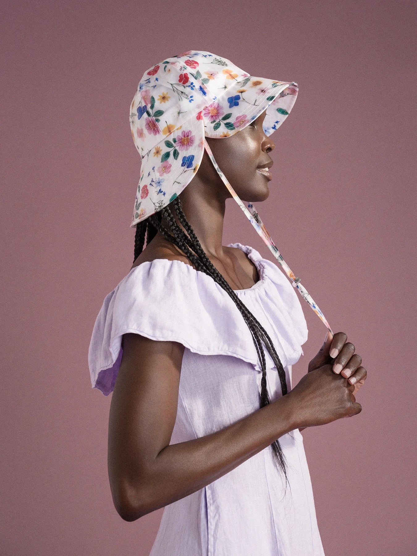 Inspired by vintage rain hats, hiking hats, and bonnets, Hansel from Basel combined all of the very best attributes of each style to create this seasonless essential. With a separated "tulip" brim (like petals on a flower!), they've created an extended back brim for extra sun + rain coverage. Complete with an adjustable strap, the Tulip Bucket Hat will be your must-have for all hat-necessary weather!