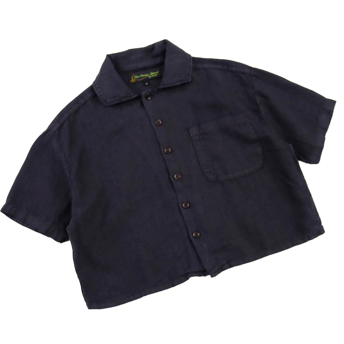 Boxy, accommodating. Cut from a sturdy/breathable 7.5 oz linen. Sleeves hit at the elbow and are meant to be rolled or left long and then it’s another vibe. ‘Cut-away’ style collar has a great ‘roll’, and the big chest pocket comes with a  pen slot (pen not included, you provide the pen).
