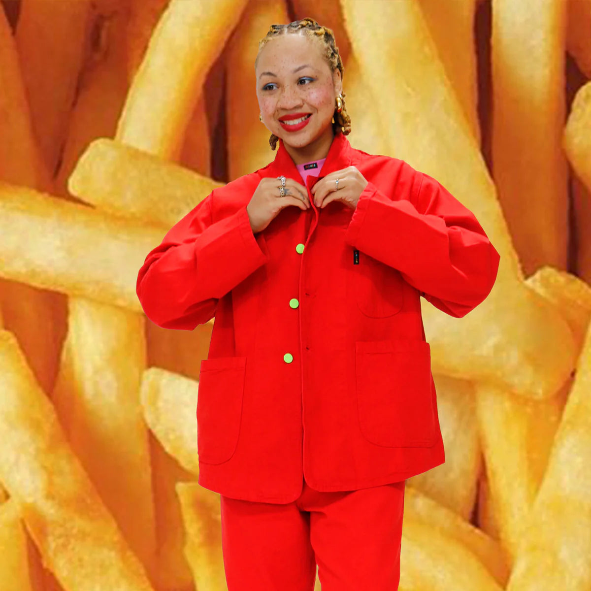 Hearty canvas jacket. Oversized cut. If you would like a more fitted look, order a size down. Big pockets for sandwiches. Soft-washed cotton. Sleeves are made long for cuffing or altering to customize your length.