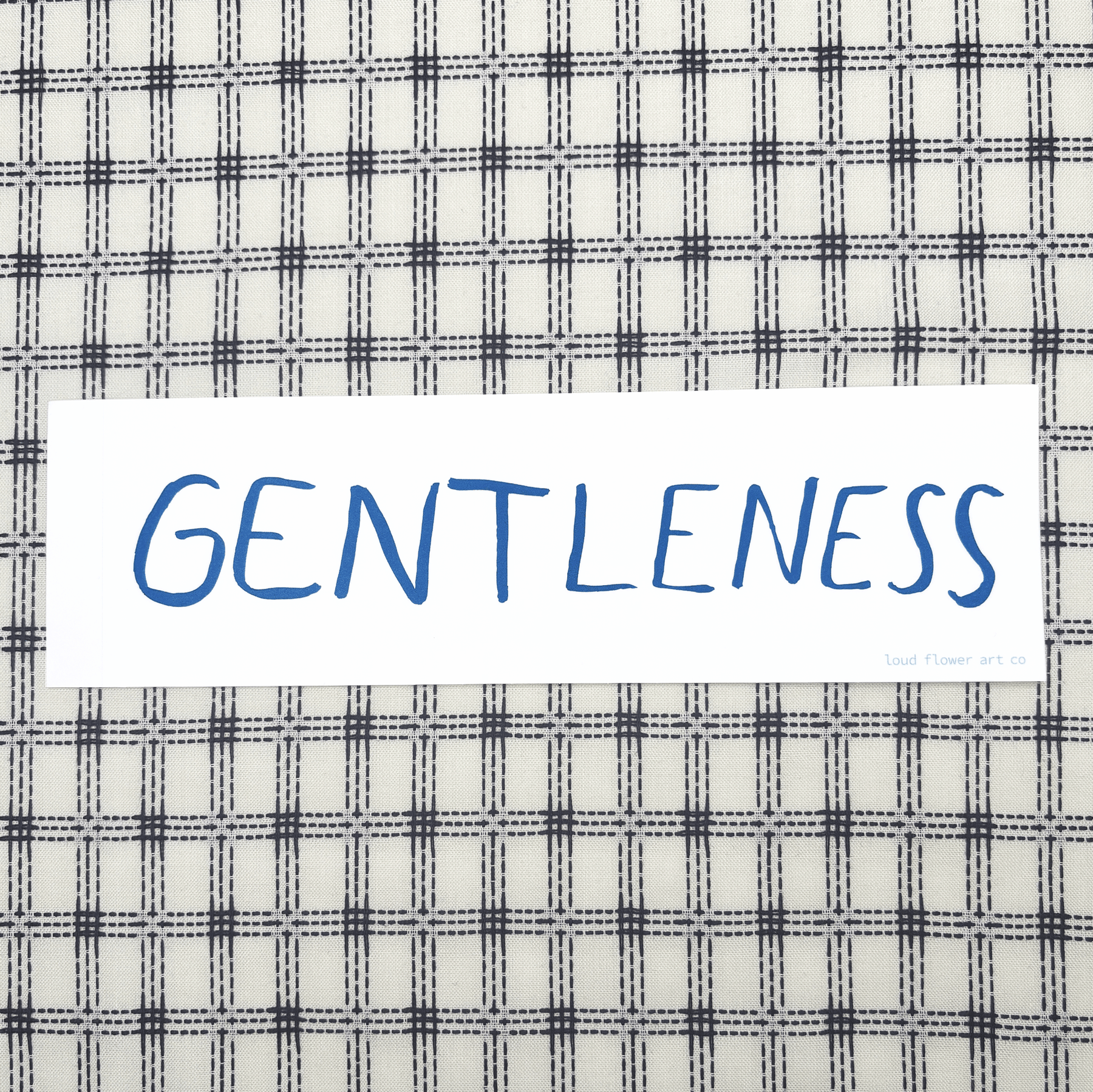 The world could use a little more gentleness...probably a lot more actually. Materials: Stickers are printed on a thick, durable vinyl with a matte finish for permanent, weatherproof, and scratch resistant use. Size: 8″ × 2.5″