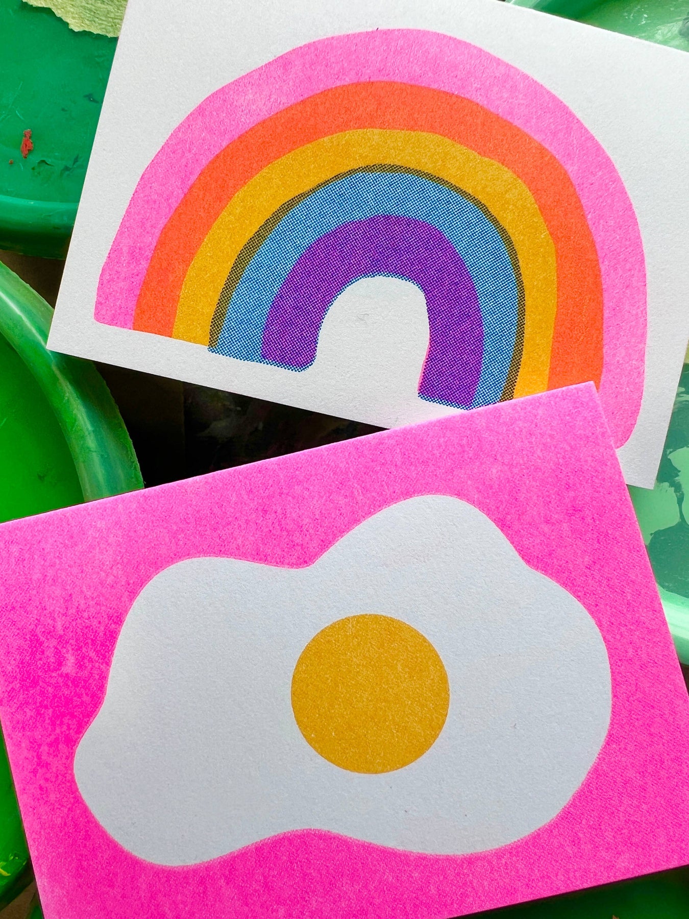 2.5 x 3.5" mini notecard/enclosure riso printed on Mohawk bright white paper.