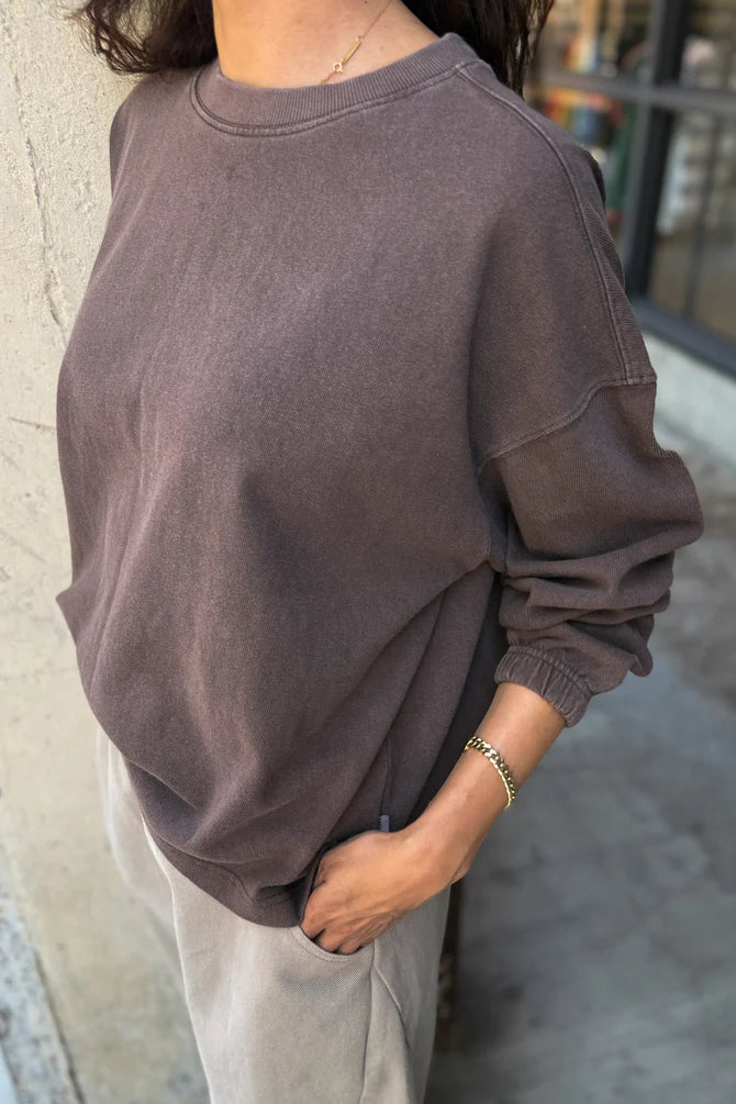 Le Bon Shoppe dreamed this beauty up while searching high and low for a simple crew neck long sleeve with a feminine touch that can be a year round closet fave. She has a slightly boxy fit, sits right at the hip and features an elastic ruched sleeve opening that creates a slight balloon sleeve effect worn down and scrunches up beautifully.