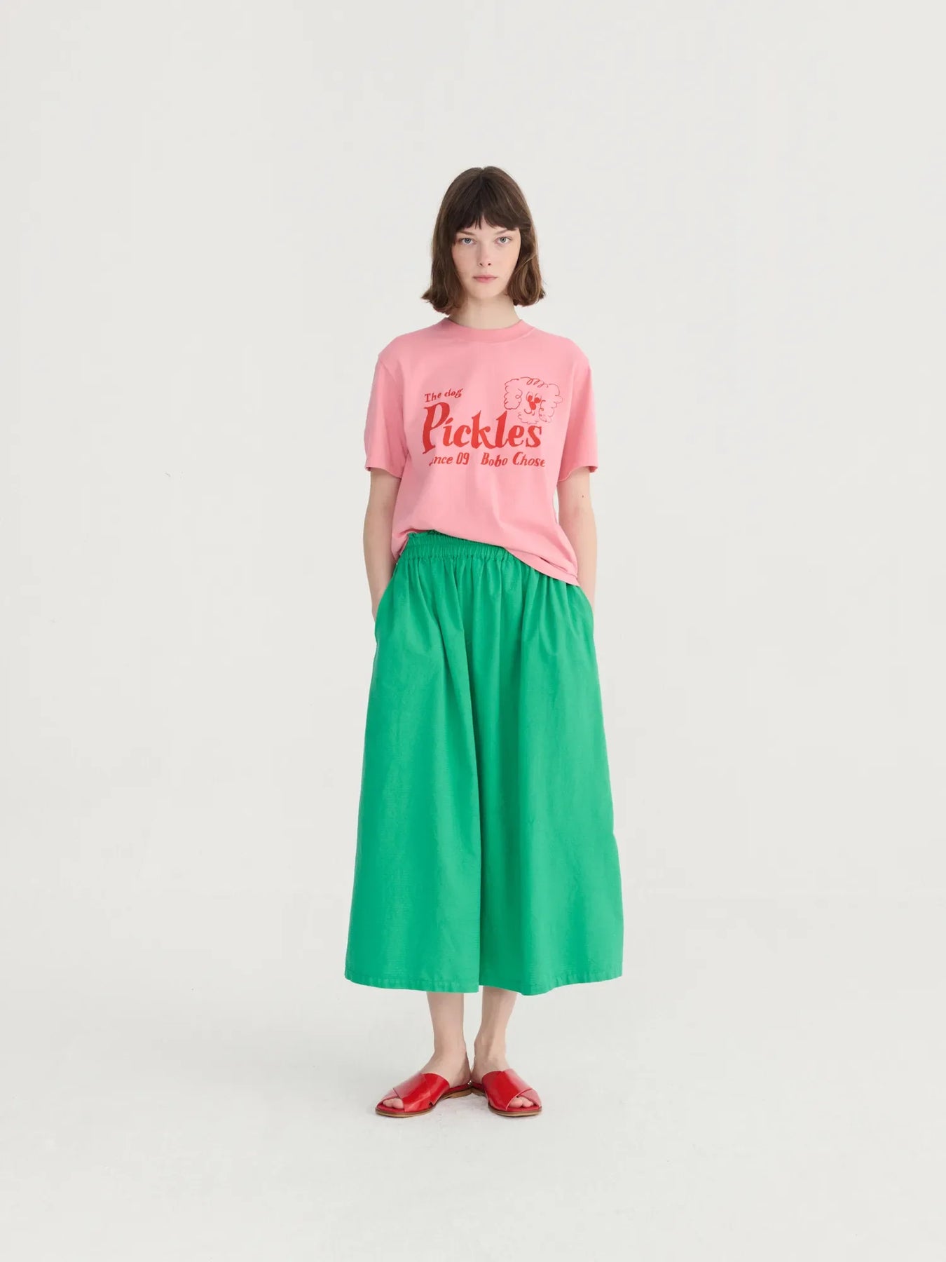 Green skirt. Designed for a relaxed fit, midi length, flared cut / evasé, non stretchy fabric and designed with pockets. Fits true to size, take your normal size. Made in Spain.