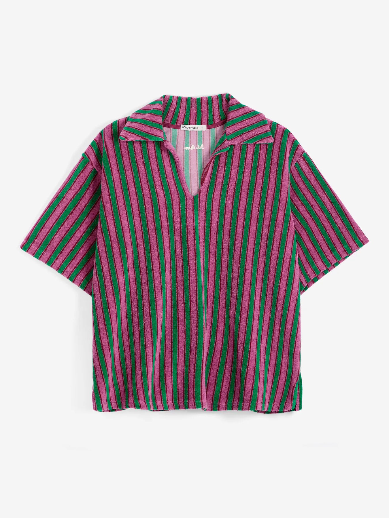 Multicolor shirt. Designed with boxy fit and stretchy fabric.