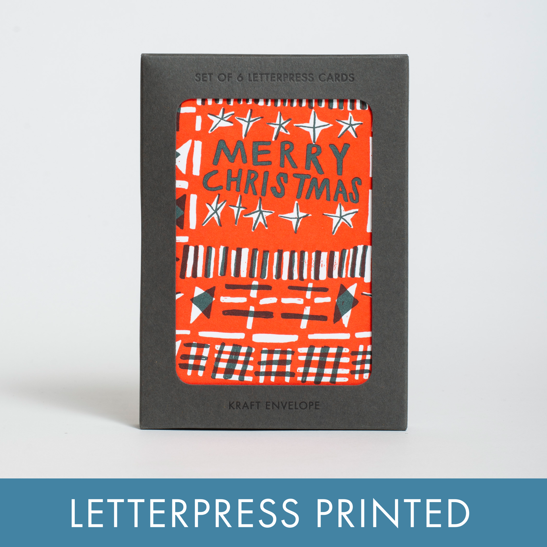 Celebrate the Christmas season with a classic "Merry Christmas" handmade letterpress card set.