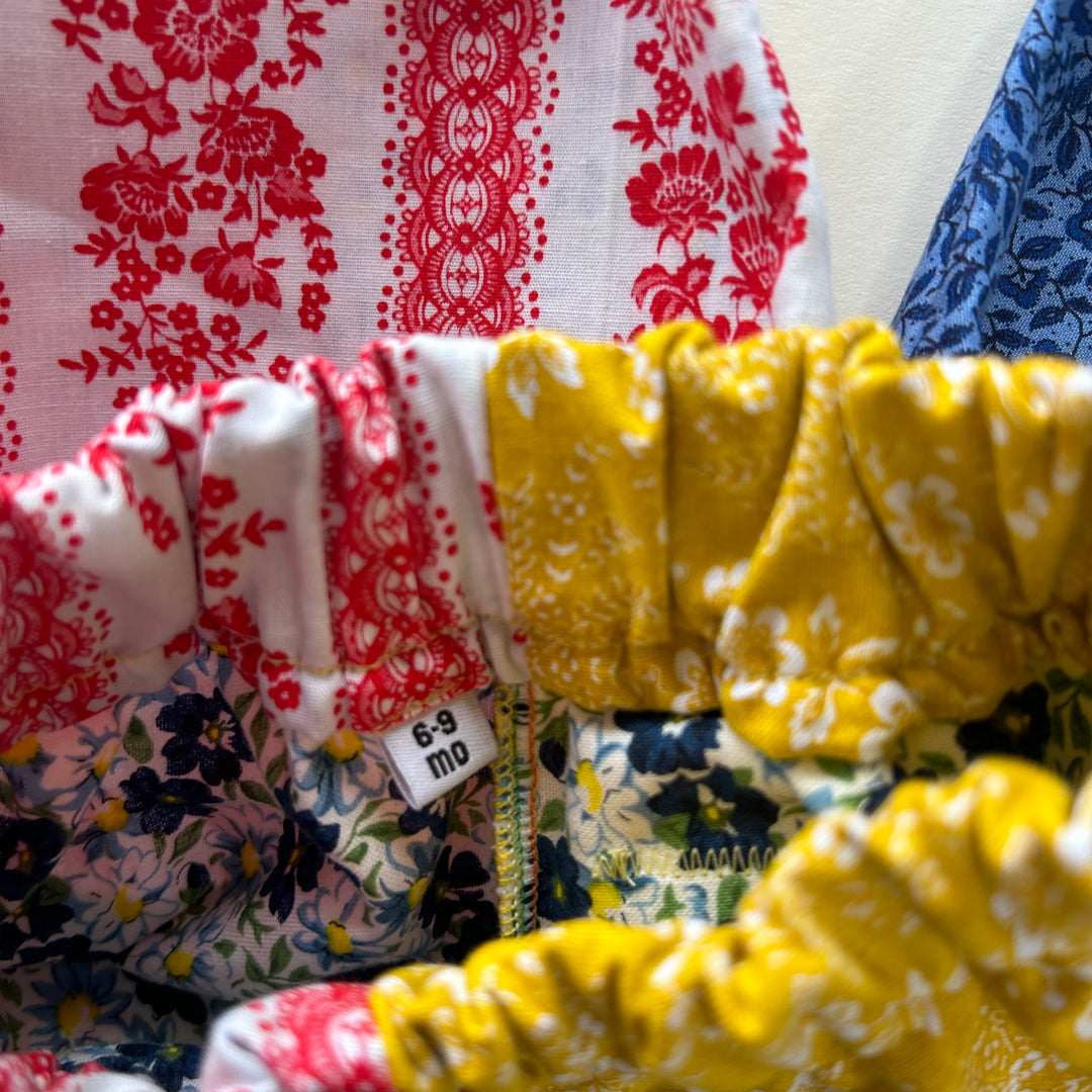 Care: to preserve vibrancy of vintage fabrics, gentle wash and hang dry is preferred.