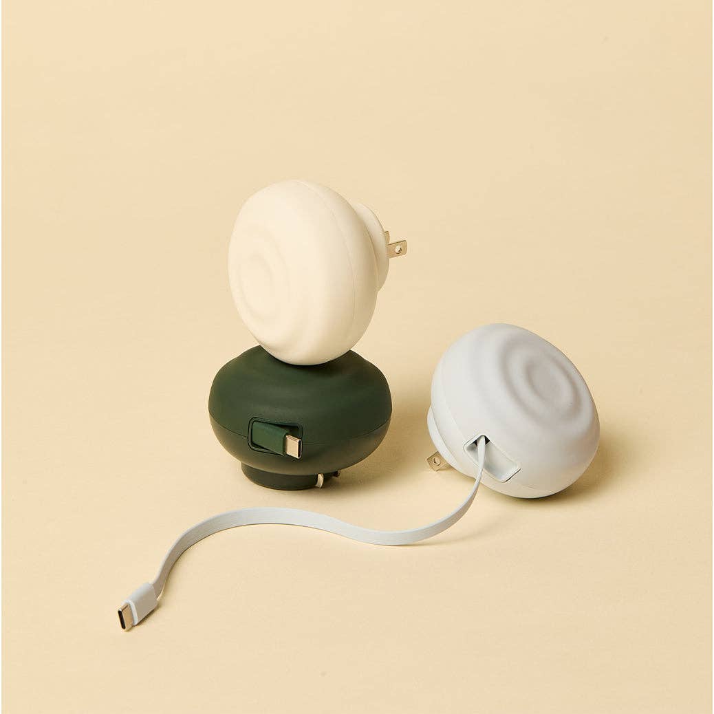 These 35 Watt cord-retractable chargers are made of silicone and post-consumer plastic, with a button-enabled cable retractor. Their rippled, soft exteriors are both texturally satisfying and sensibly durable, protecting 4 feet of USB-C cord.