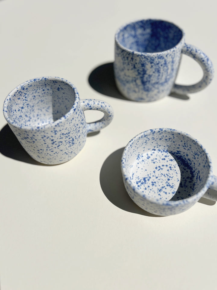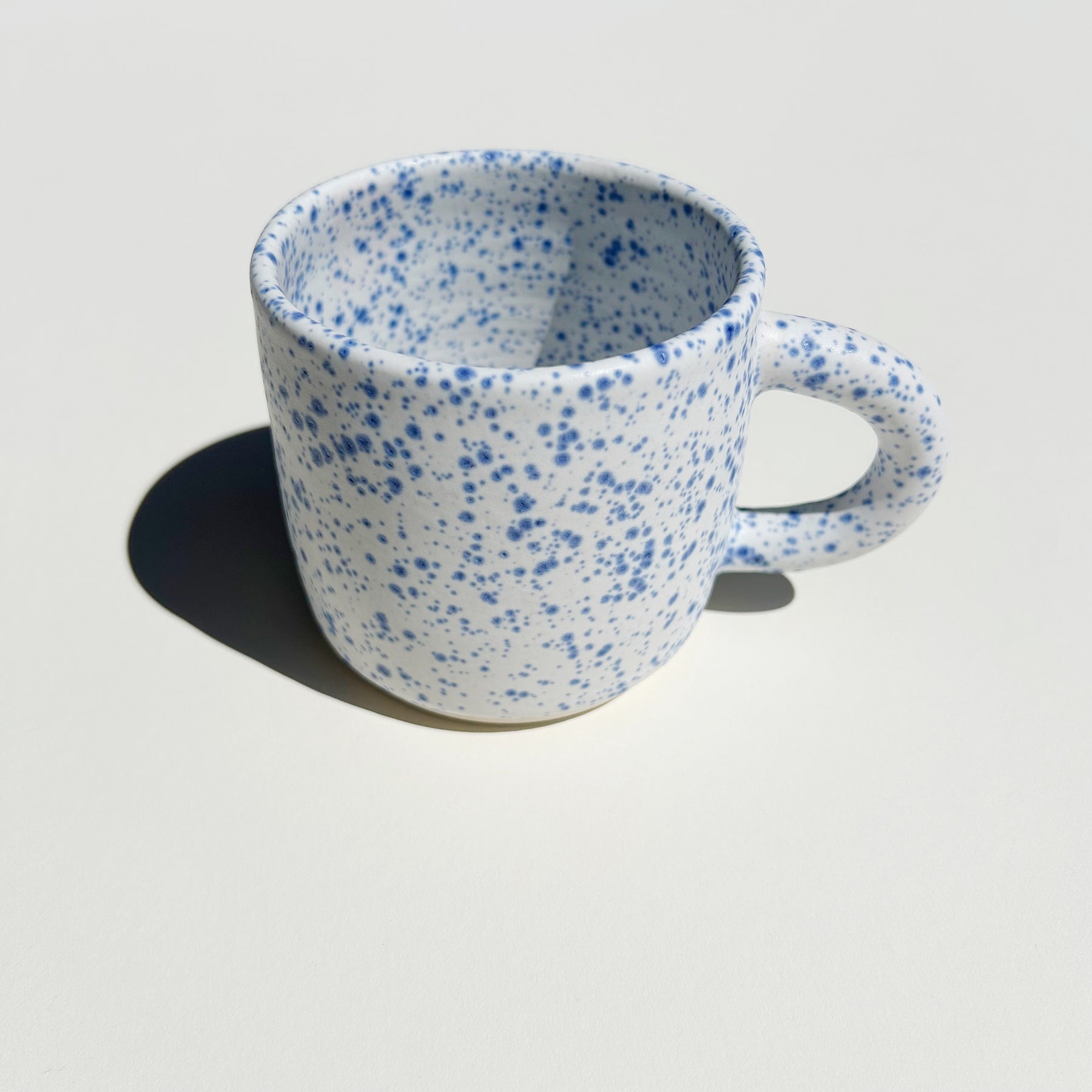 This blue speckle mug is thrown on the wheel by Ballard-based ceramicist Courtney Hunter of The Waight.