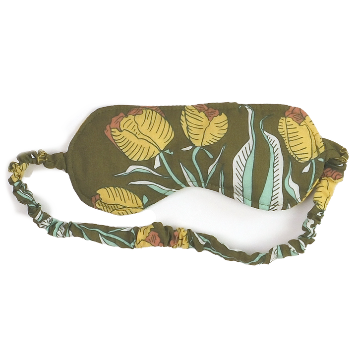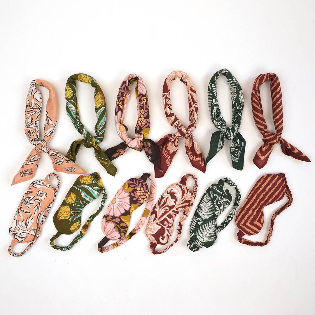 Sleep ever so sweetly with our cotton eye masks! One size fits all. Elastic band covered with matching cotton fabric. These are created using scraps from the bandana-making process, saving excess from the landfill. Details: Double-sided cotton Covered elastic band Cushioned batting Pattern placement will vary