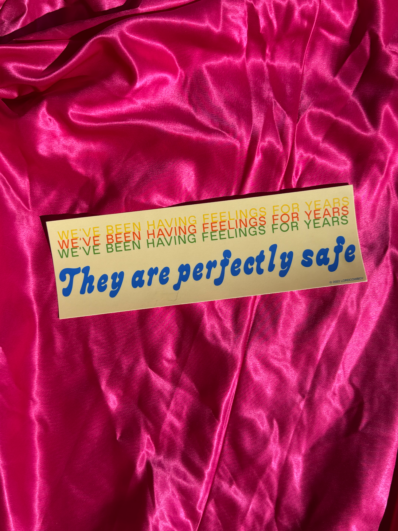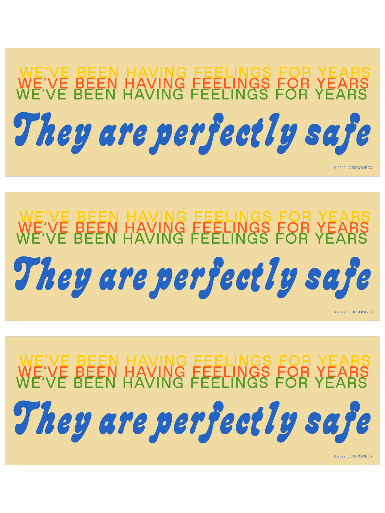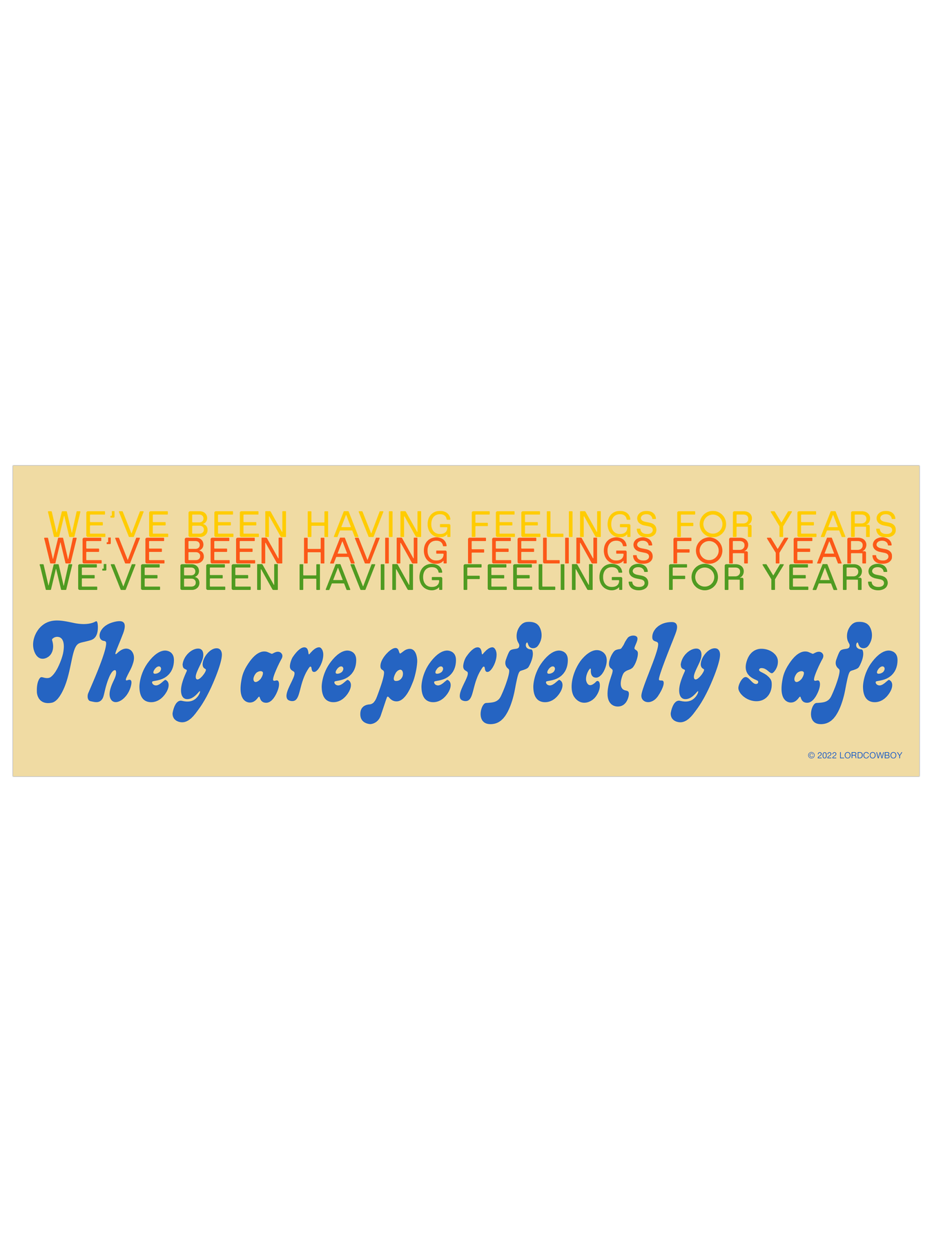 Feelings are perfectly safe, now available in a rainbow inspired color-way with a smooth matte finish. Measures 8.5” x 2.75”