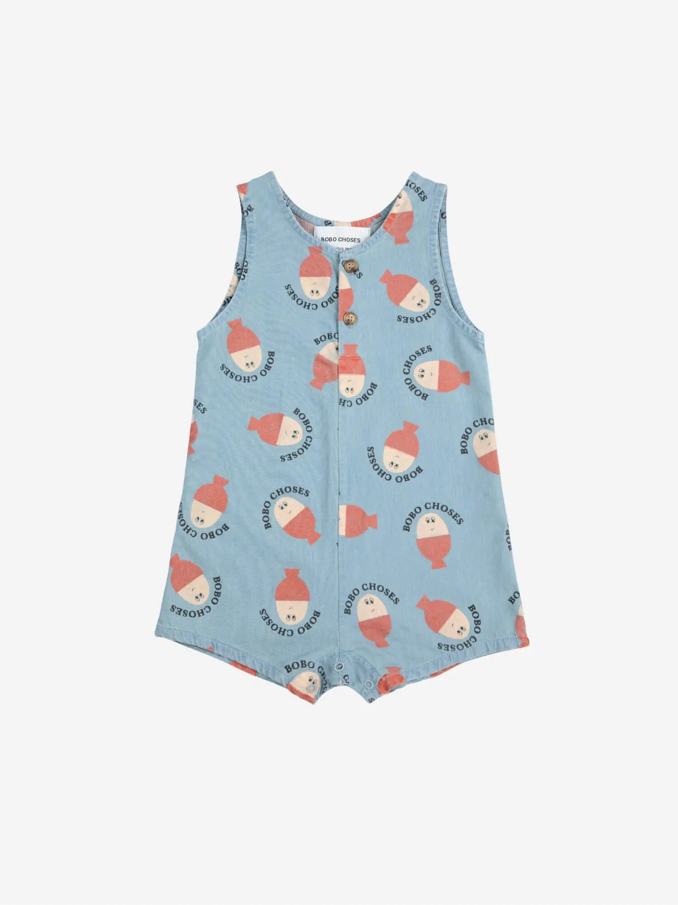 Effortlessly stylish, this light blue playsuit blends comfort and functionality. Made from 100% cotton, it features a sleeveless design, front button fastening, and crotch snap fastening for ease of wear. The loose fit, round neck, relaxed crotch, and half placket make it an ideal choice for warm weather. Lovingly crafted in Spain.