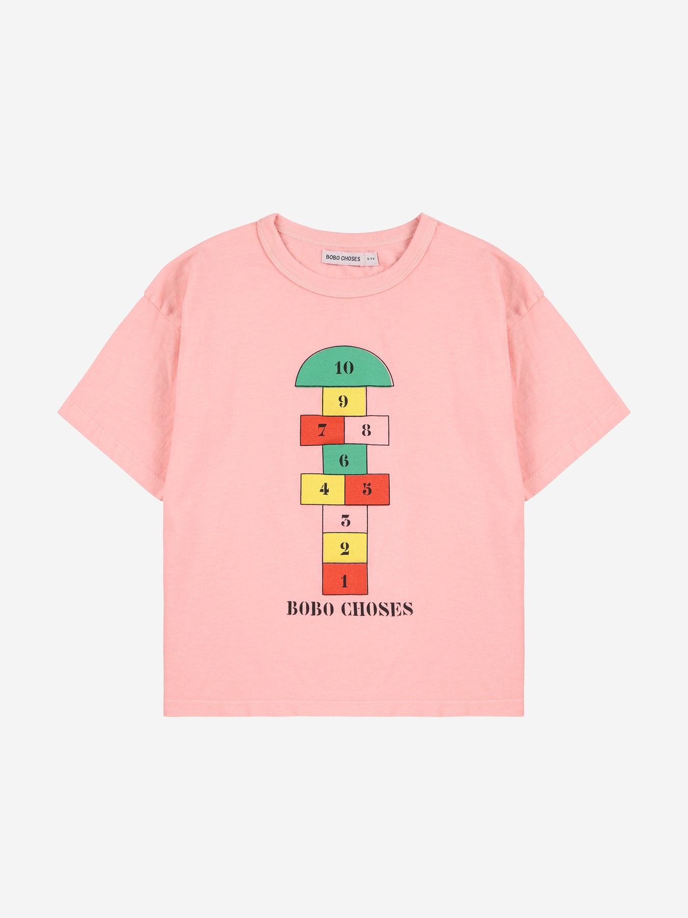 Pink t-shirt. Designed with short sleeves, loose fit and round neck.