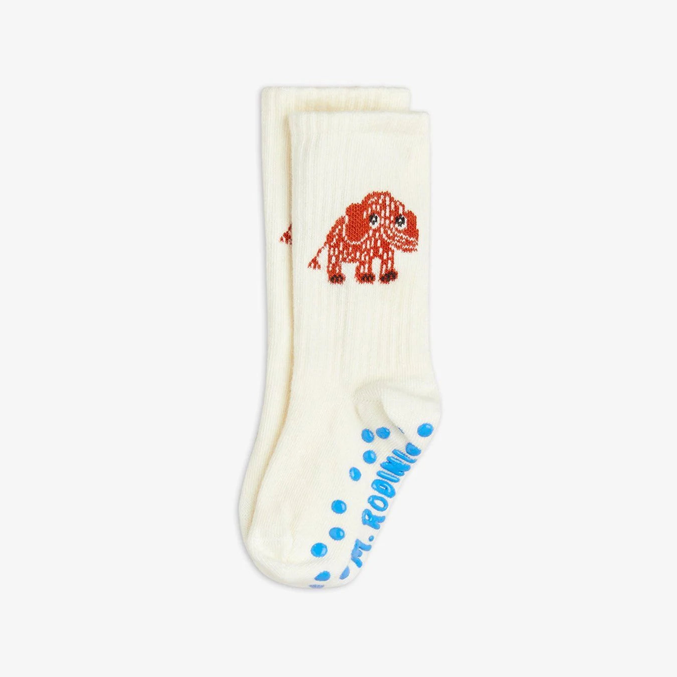 Anti-slip socks with adorable mammoth print made from GOTS certified organic cotton with stretch. Designed with reinforced heels and toe caps. Silicone bubbles are printed under each foot to prevent slipping.