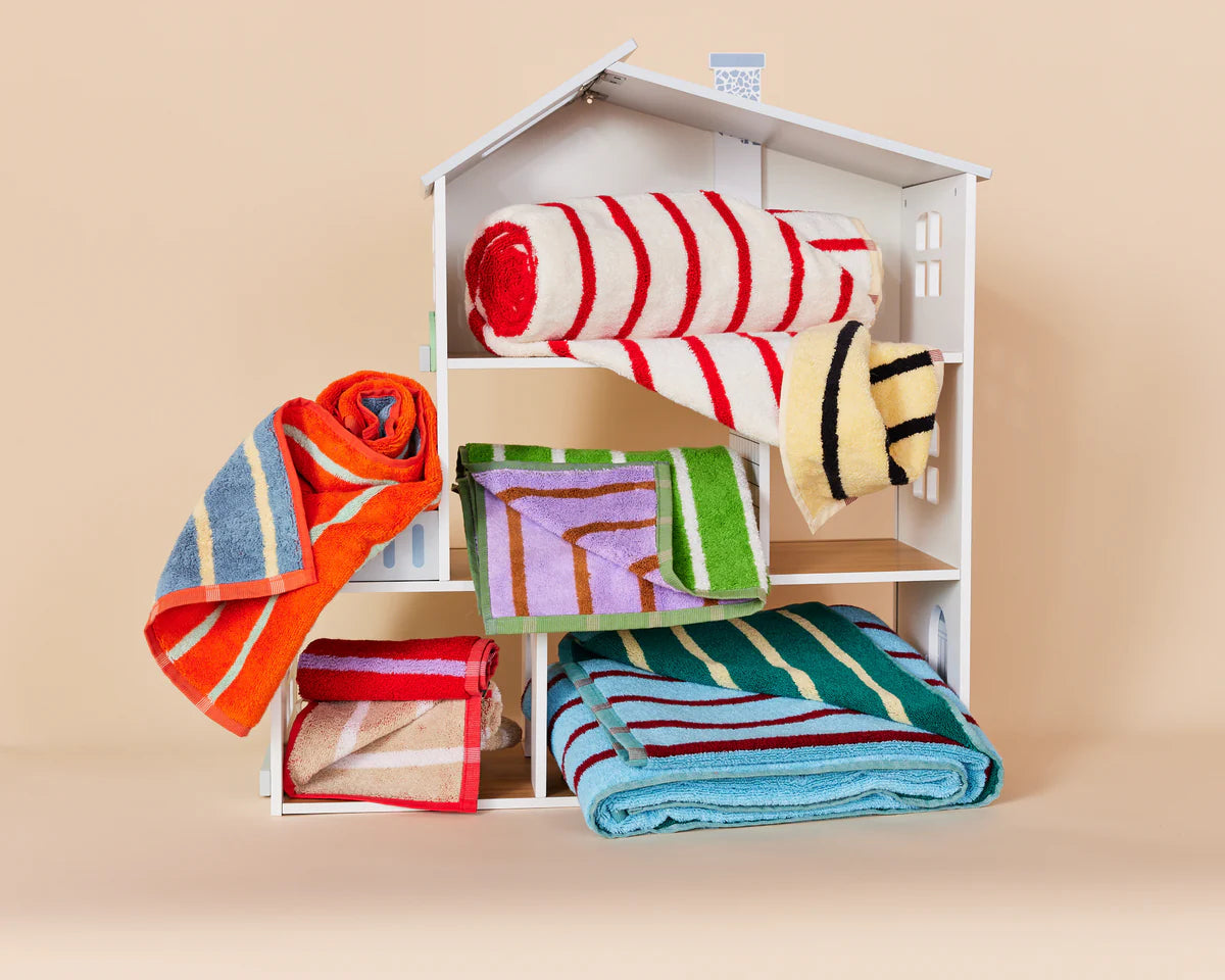 Yellow and black, red and white, this striped towel will make you feel just right!