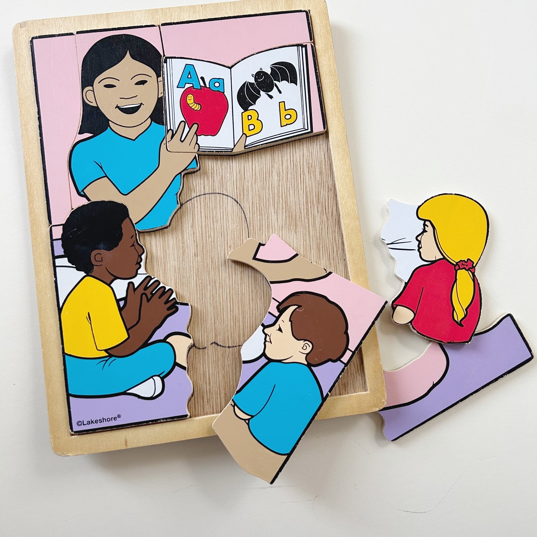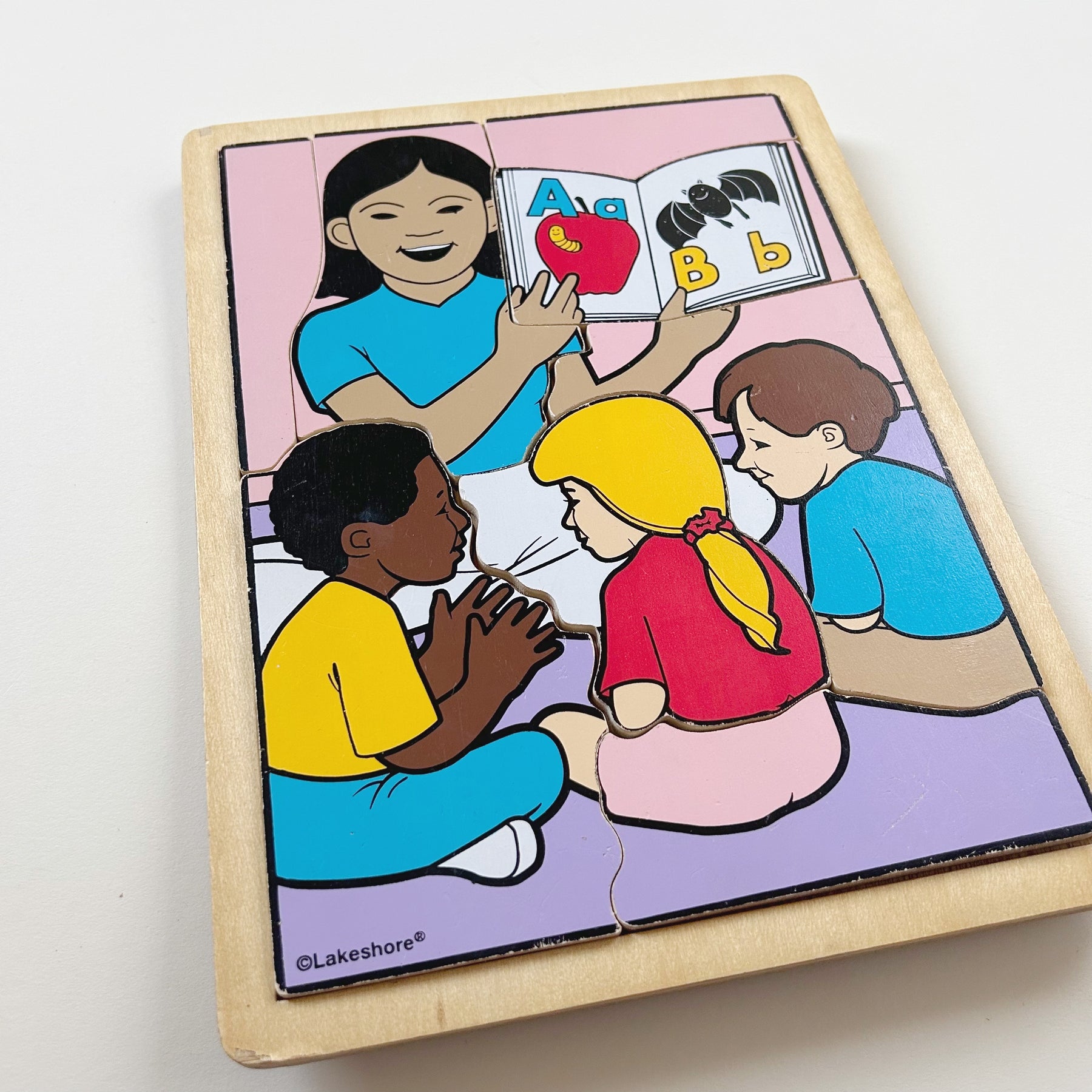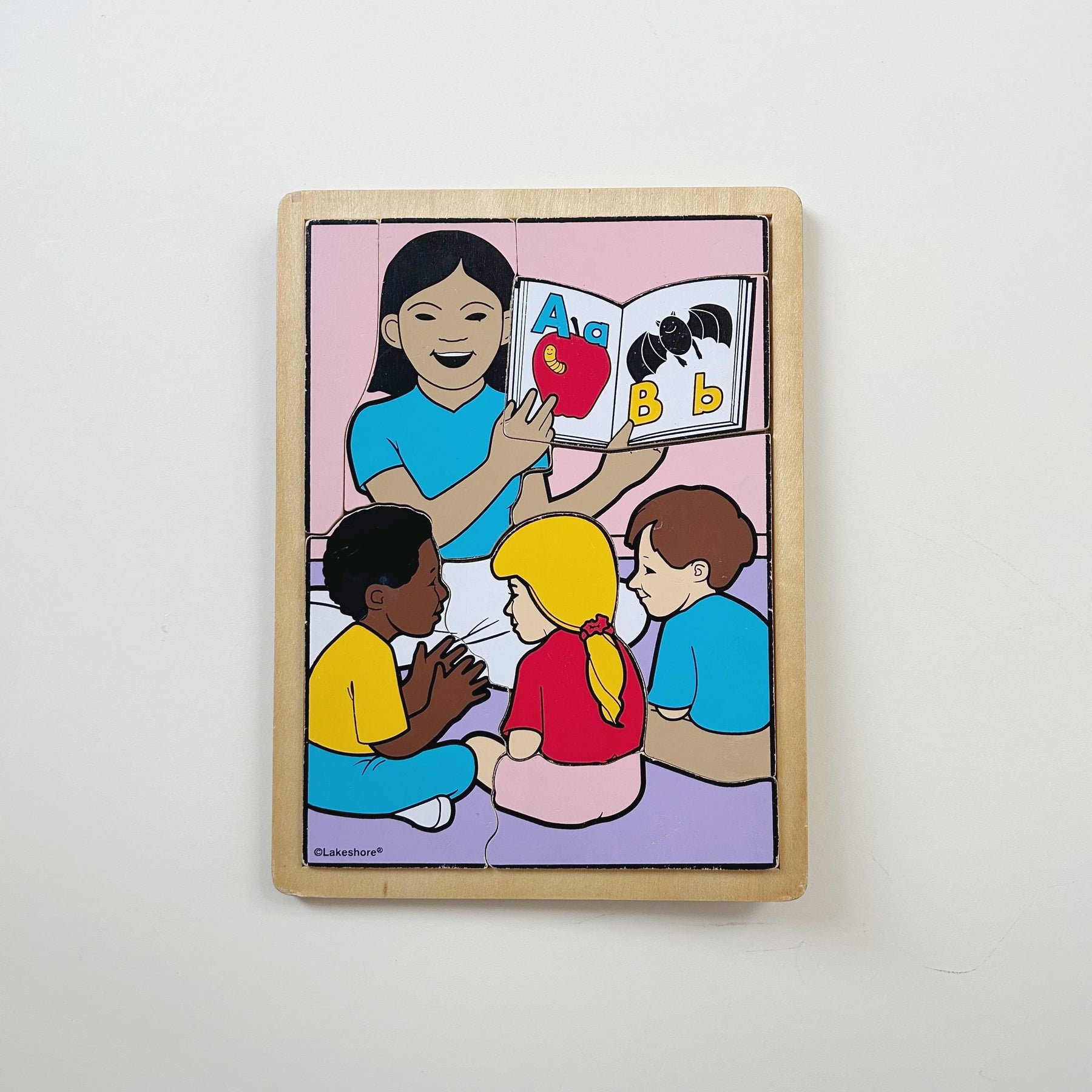 Retro wooden puzzle from Lakeshore. Teacher with students. Good used condition with some marks/wear. Such a fun one!