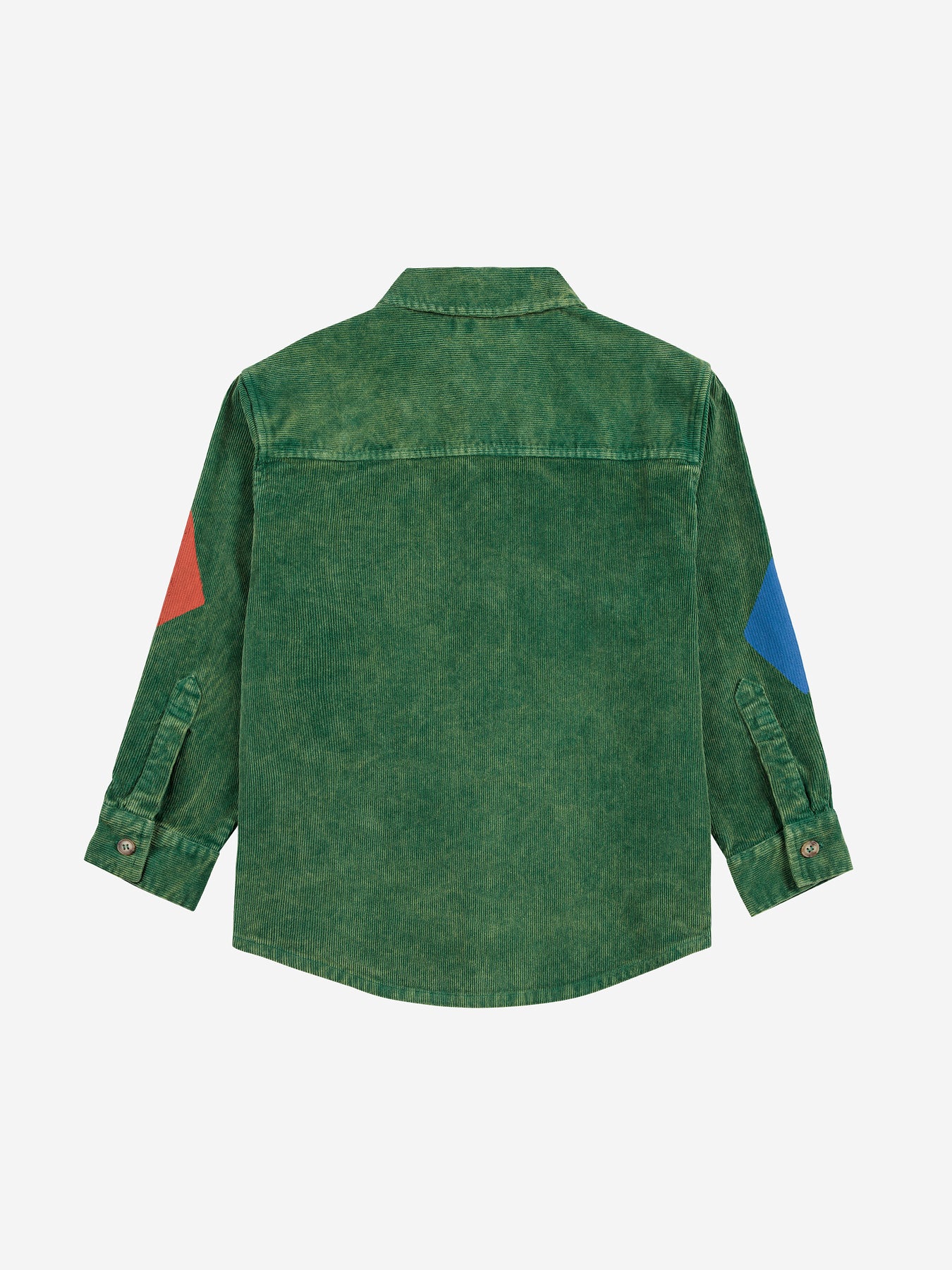 Green shirt. Designed with tailored collar, long sleeves, front button fastening, buttoned cuffs, patched chest pocket, embroidery, loose fit, shirt hem, back yoke and corduroy.