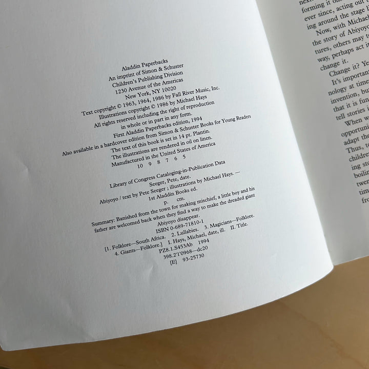 Paperback copy of Abiyoyo, as told by Pete Seeger. Good used condition with light wear to the cover (see images).
