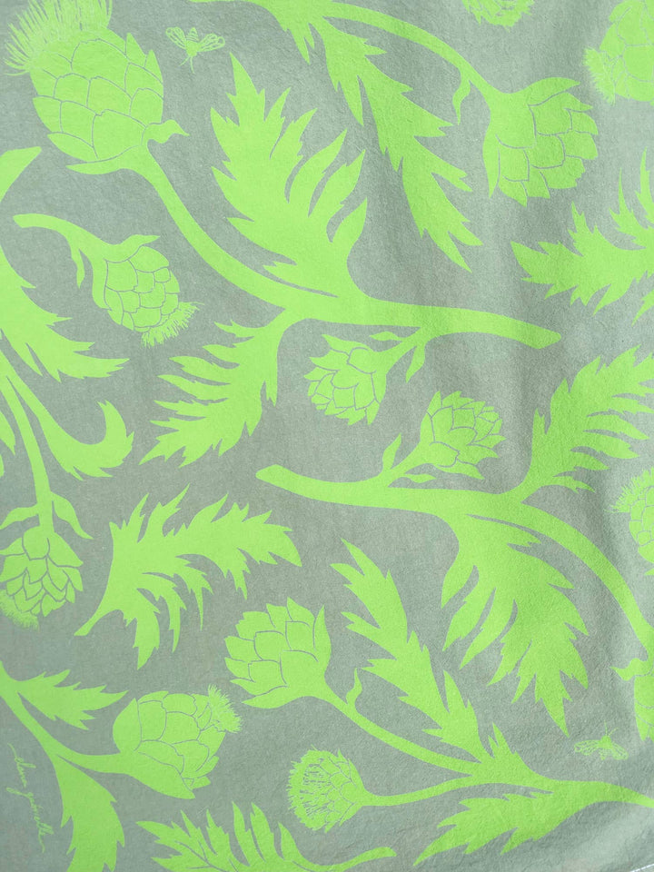 This towel is inspired by neighborhood gardens and homegrown abundance. These tea towels were created as multifunctional textiles for both inside and outside the kitchen. Made with 100% cotton and screen-printed with water-based ink, they are safe to use around food and make wonderful kitchen cooking companions. I love the many ways that this textile can be used. It makes a lovely gift, whether given on its own or used as wrapping ‘paper.’ It holds small Tupperware and containers well for taking snacks to-go, and doubles as a picnic placemat. Great for covering rising bread dough and wrapping freshly baked loaves. As the material is soft yet sturdy, it can also be used as an altar cloth or hung as a tapestry. Each towel measures approximately 26 x 27” and includes a loop for hanging.