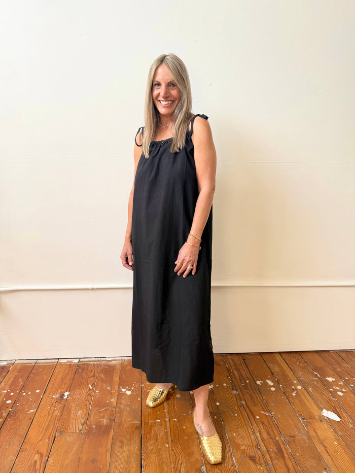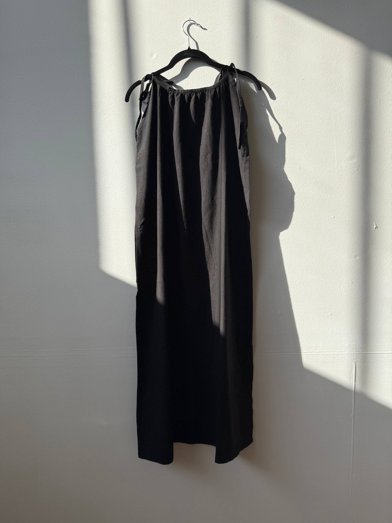 Light, airy, and effortlessly chic, the Aurore Dress is your go-to piece for warm, sunny days. Designed with adjustable shoulder ties, you can knot them to your perfect fit, subtly altering the length for a personalized touch. This dress is a one-size piece, designed to fit comfortably from S to XL. The armpit-to-armpit measurement is 44 inches, ensuring a relaxed and flowing fit for a variety of body types. Flowing and long, this dress drapes beautifully, offering an elegant yet relaxed silhouette. Crafted from breathable, natural fabric, it’s made to keep you cool and comfortable all summer long. Whether you're strolling on the beach, exploring the city, or dressing up for a sunset dinner, the Aurore Dress moves with you.