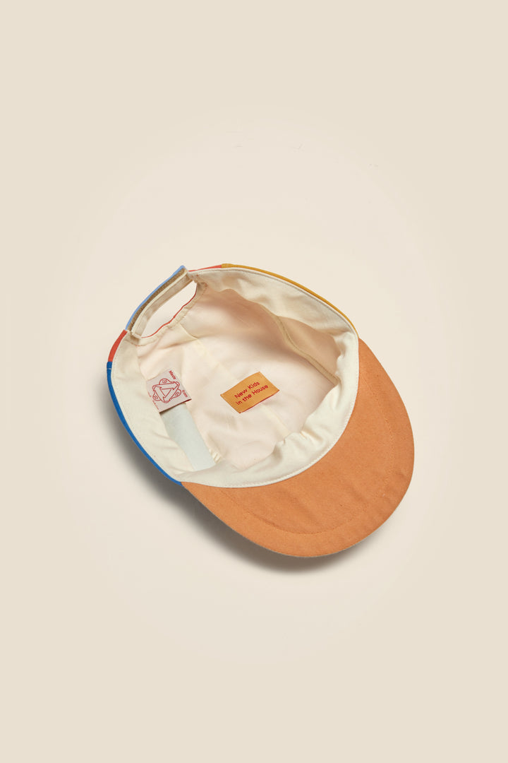 The washed-out multi model comes in in red, yellow and blue shades and has the NKITH snake-logo on the front label. Like all NKITH summer caps it is made from pre-used bedlinen. The cap has a light cotton lining and comes with NKITH signature soft visor.