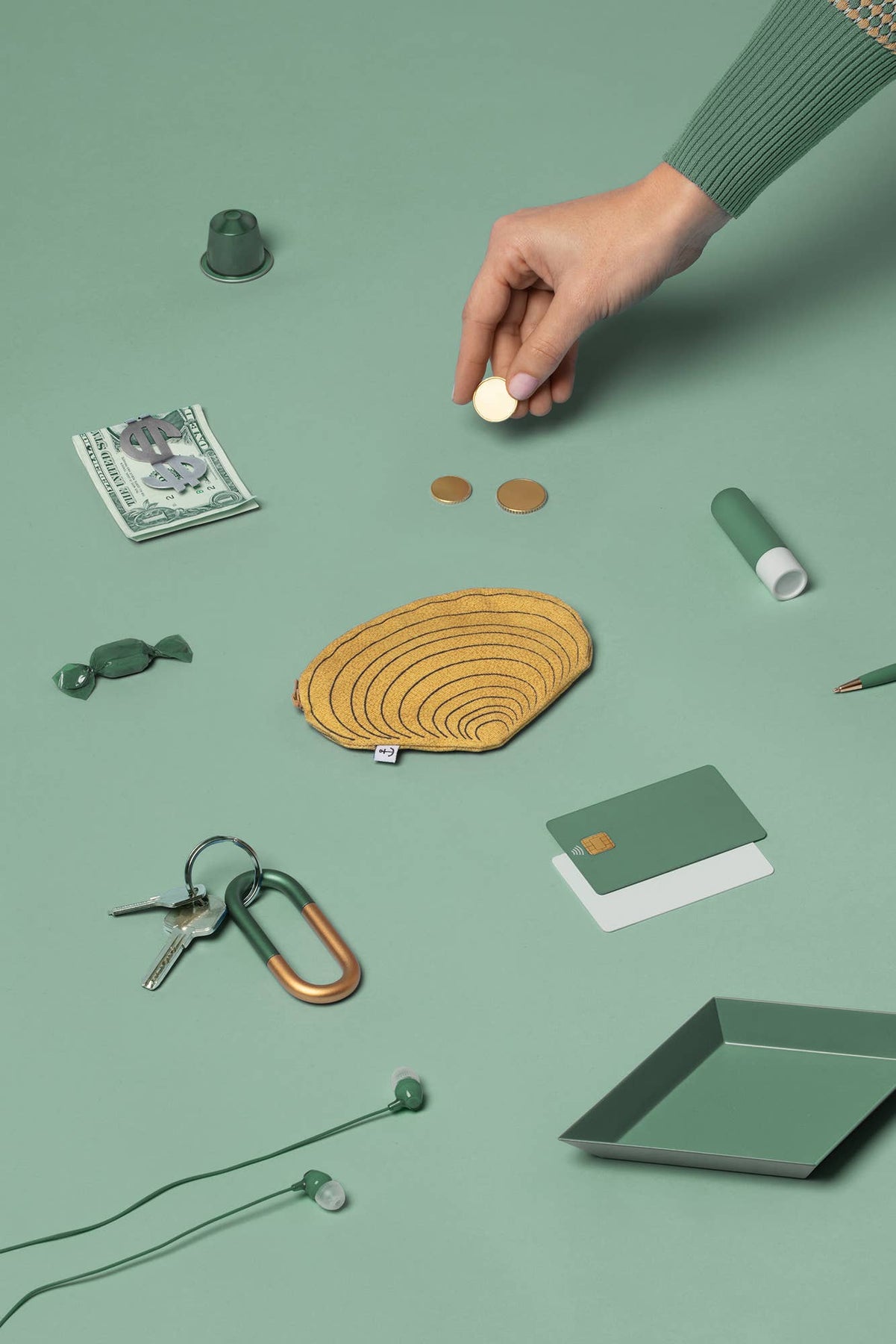 The Clam purse in yellow colors is a delightful accessory made from soft cotton fabric. With its unique design, adds a playful touch to your ensemble.