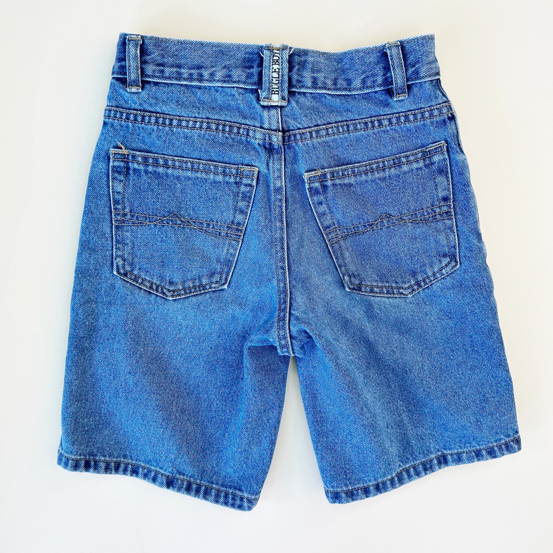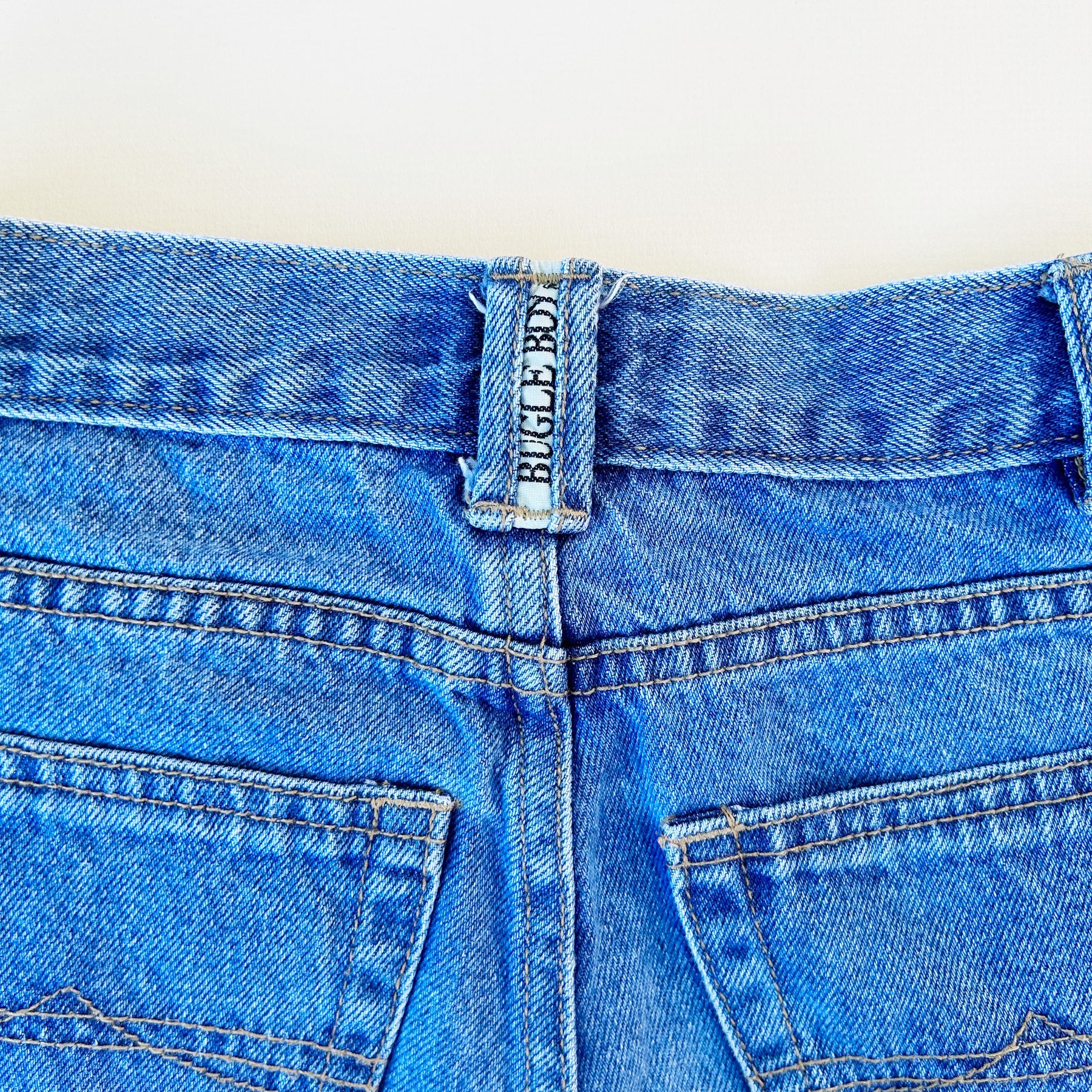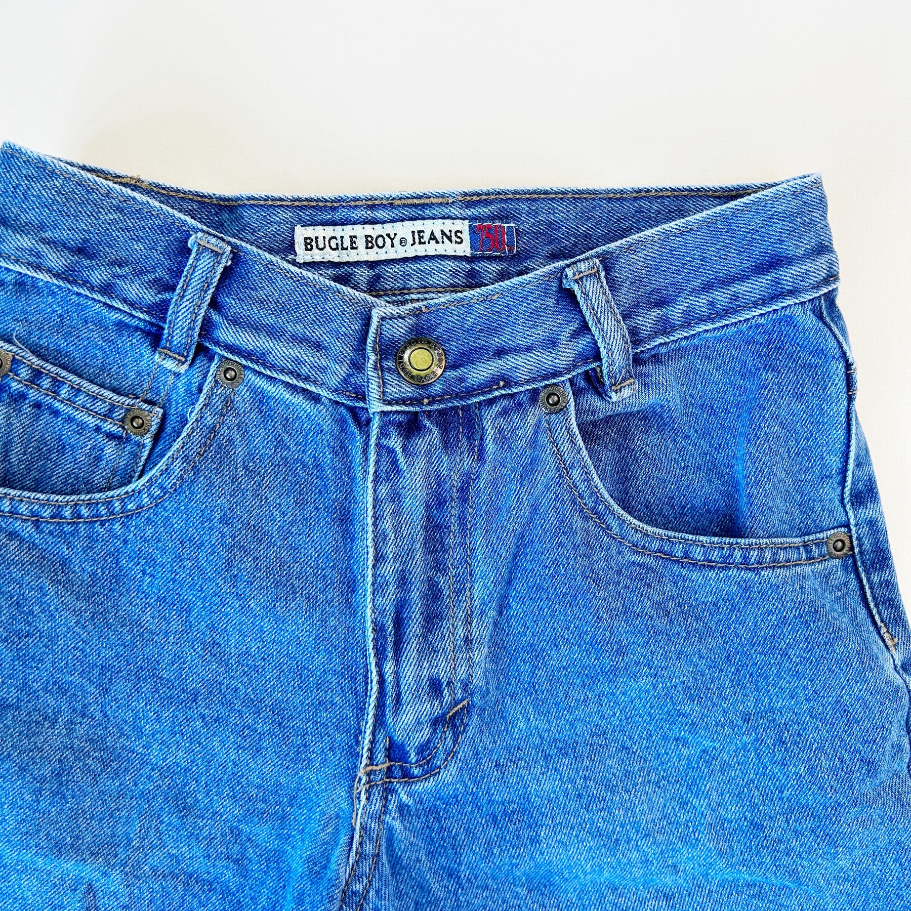 Vintage denim shorts from Bugle Boy. Size 8 (16" length, 11.5" waist -- further measurements available upon request). Good vintage condition with some expected wear.