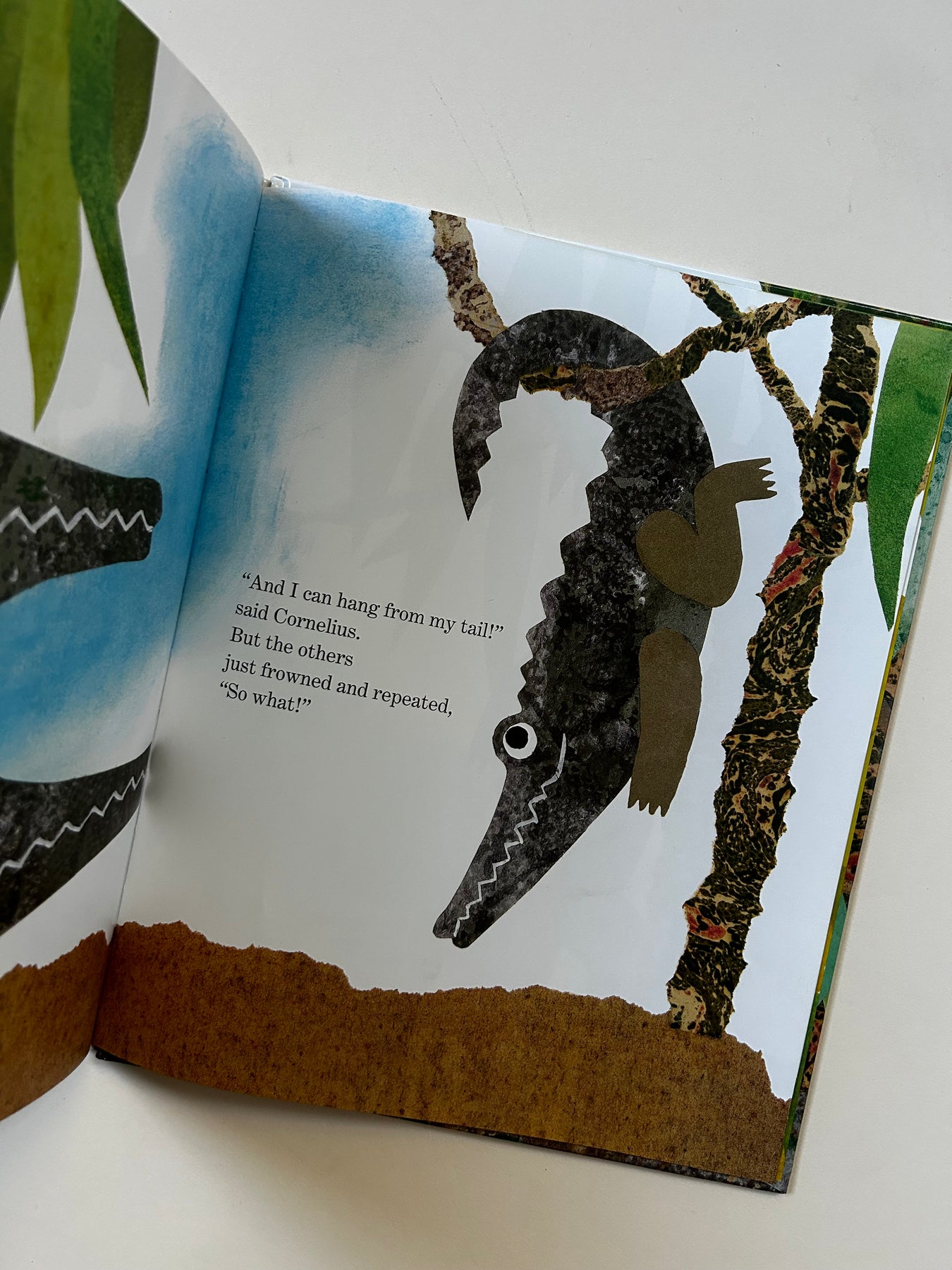 Unlike other crocodiles, Cornelius walks upright, sees things, and does tricks no other crocodile can. His friends aren't impressed. "So what?" they say when he demonstrates standing on his head or hanging from his tail. At first, Cornelius is disappointed, but things aren't always what they seem, and life on the riverbeach is about to undergo some big changes. Children will draw inspiration from this tale of a crocodile who marches to his own drummer.