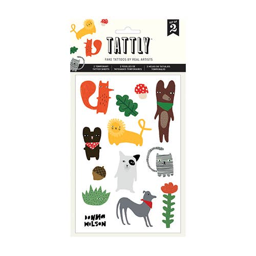 Creature Crew Tattoo Sheets by artist Donna Wilson. Quality, non-toxic and made in the USA. Tattly Pairs include two of each design packaged in a polybag and sealed with a branded topper that's ready to hang.