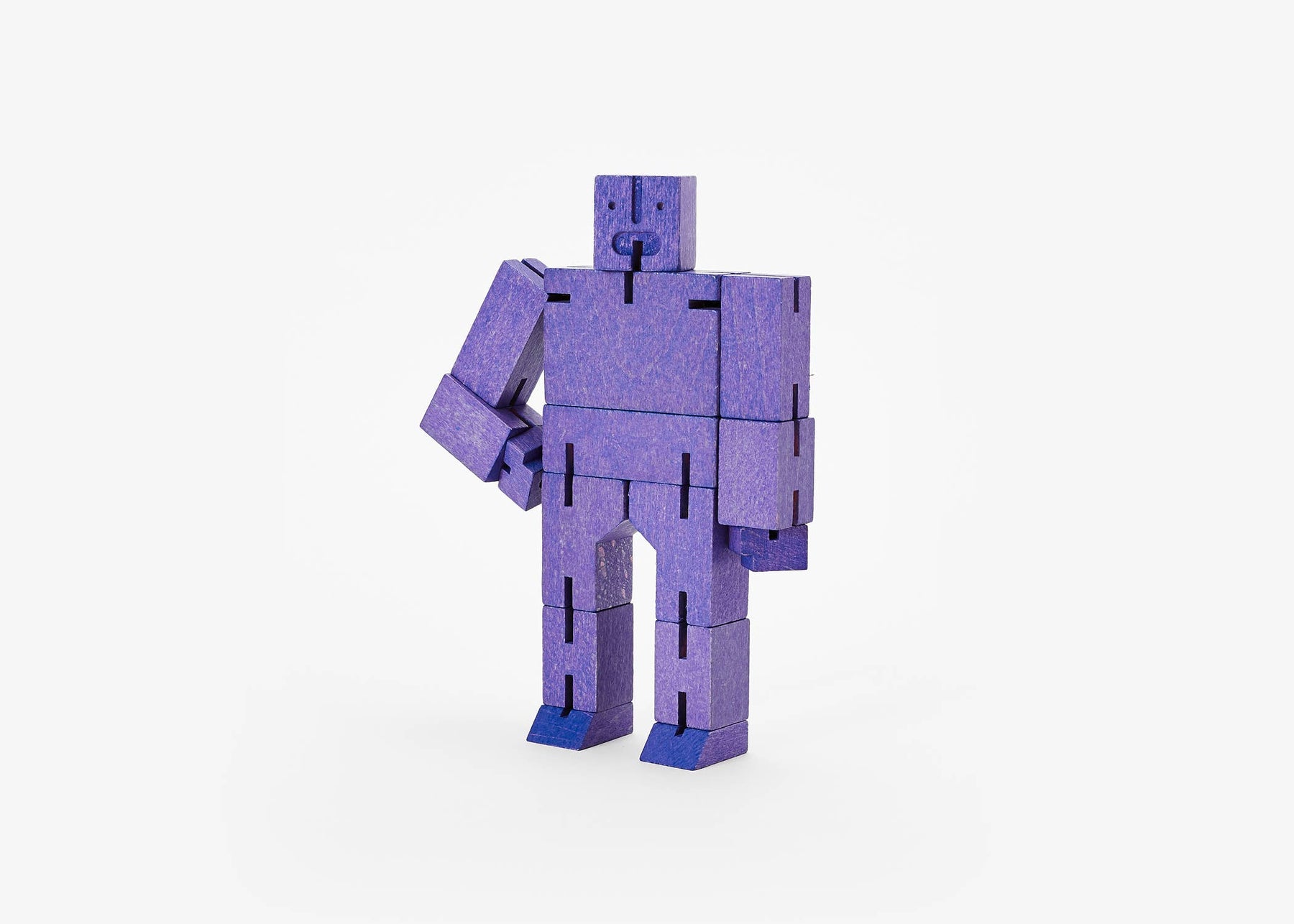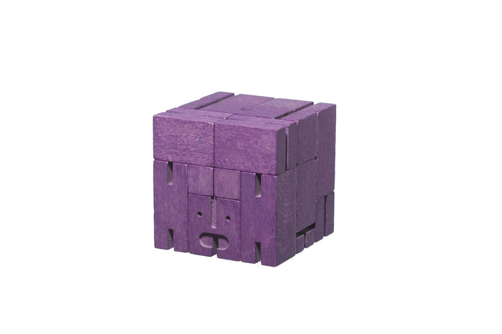 Robot toys are usually made of plastic and require batteries. Not this one! Inspired by Japanese Shinto Kumi-ki puzzles, the Cubebot is a non-traditional take on the toy robot. Cubebots's powerful hardwood frame can hold dozens poses, and his elastic-band muscles and durable wood limbs make him impervious to breakage. When it's time for him to rest, he folds into a perfect cube. An enduring classic that will withstand generations of play.