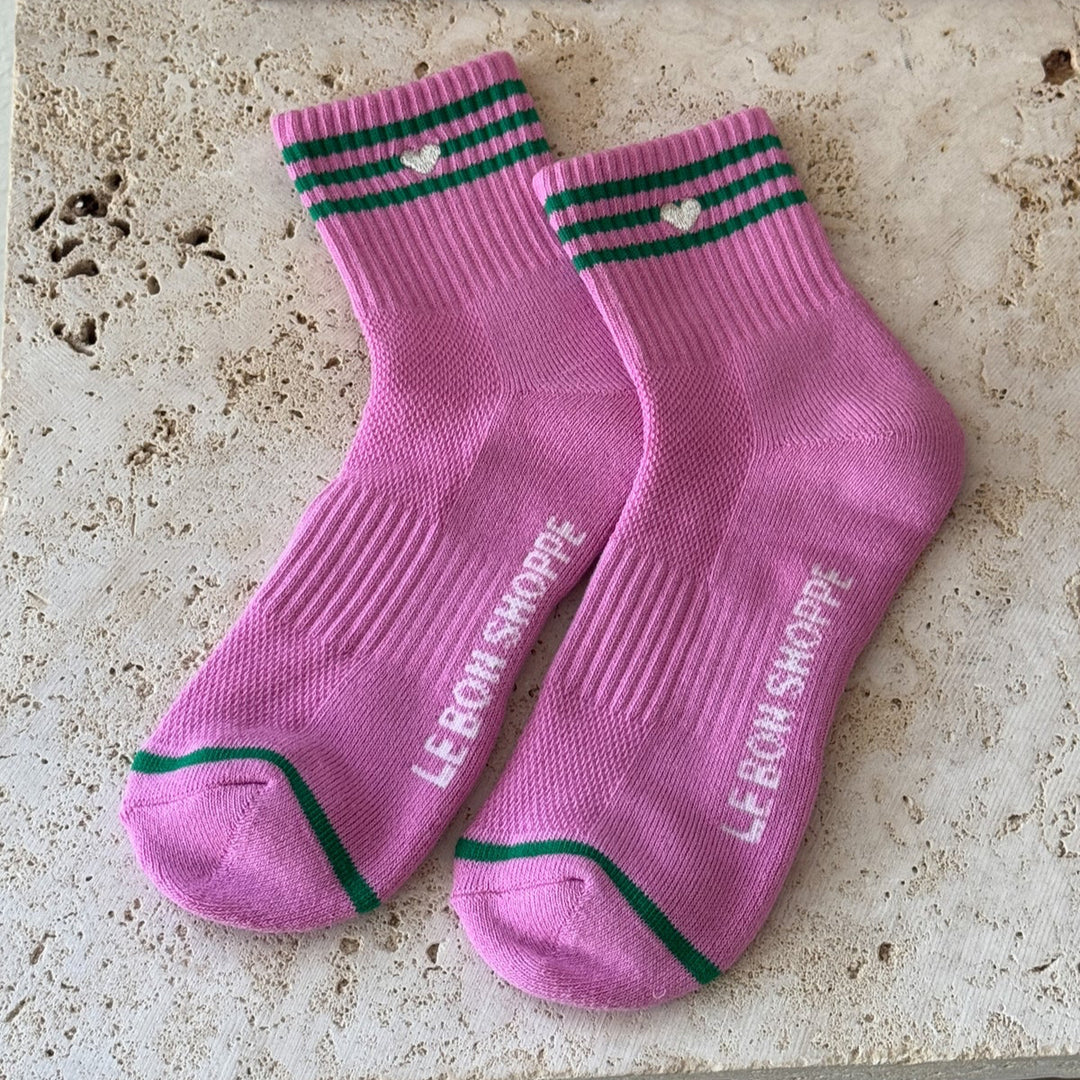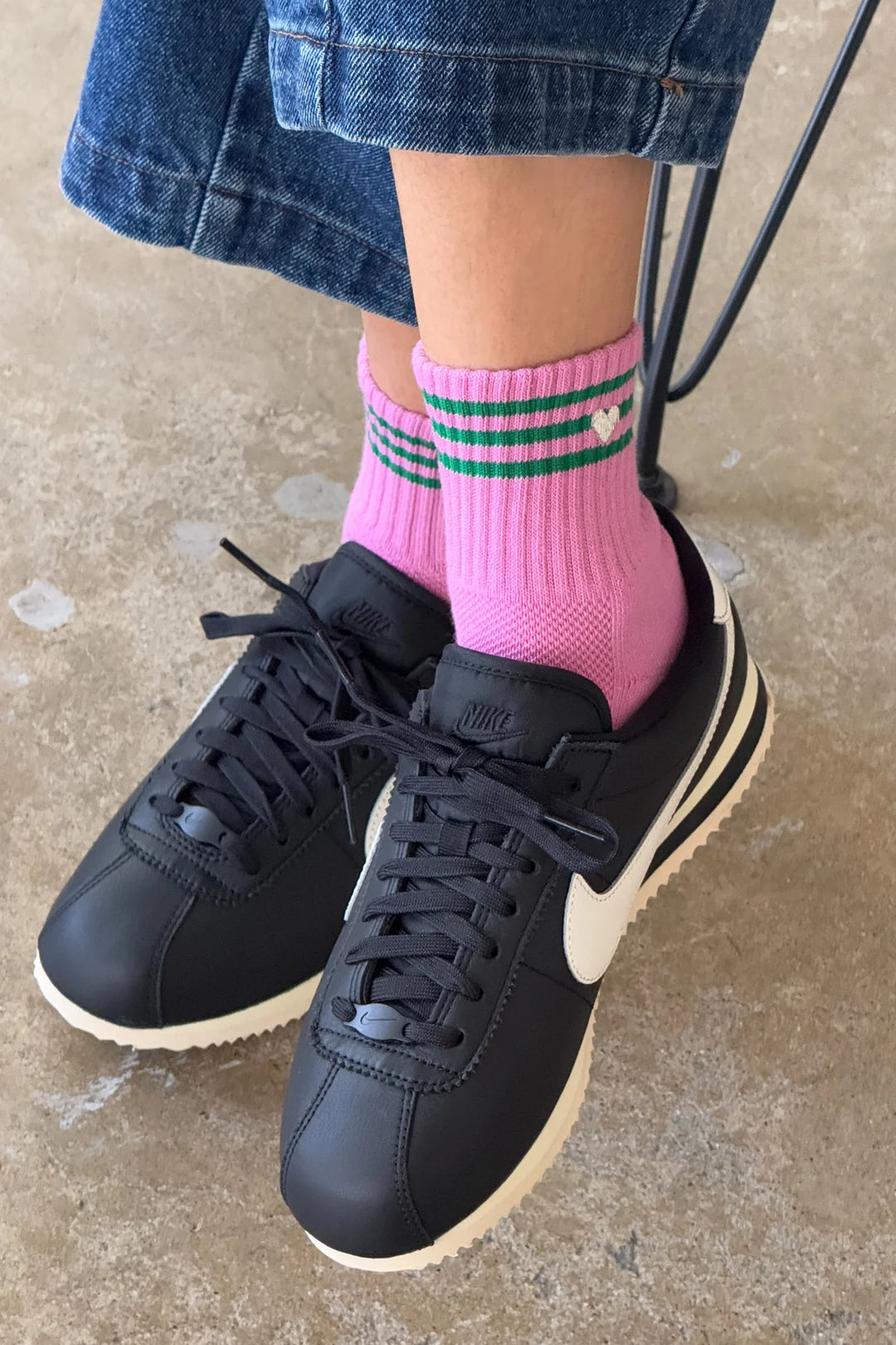 Say hello to the cutest crew socks to exist. Similar to the Boyfriend Socks, except with a short leg that fits true to the classic crew length. Under the classic triple contrast stripe sits an embroidered heart, adding the sweetest touch of affection to any outfit.