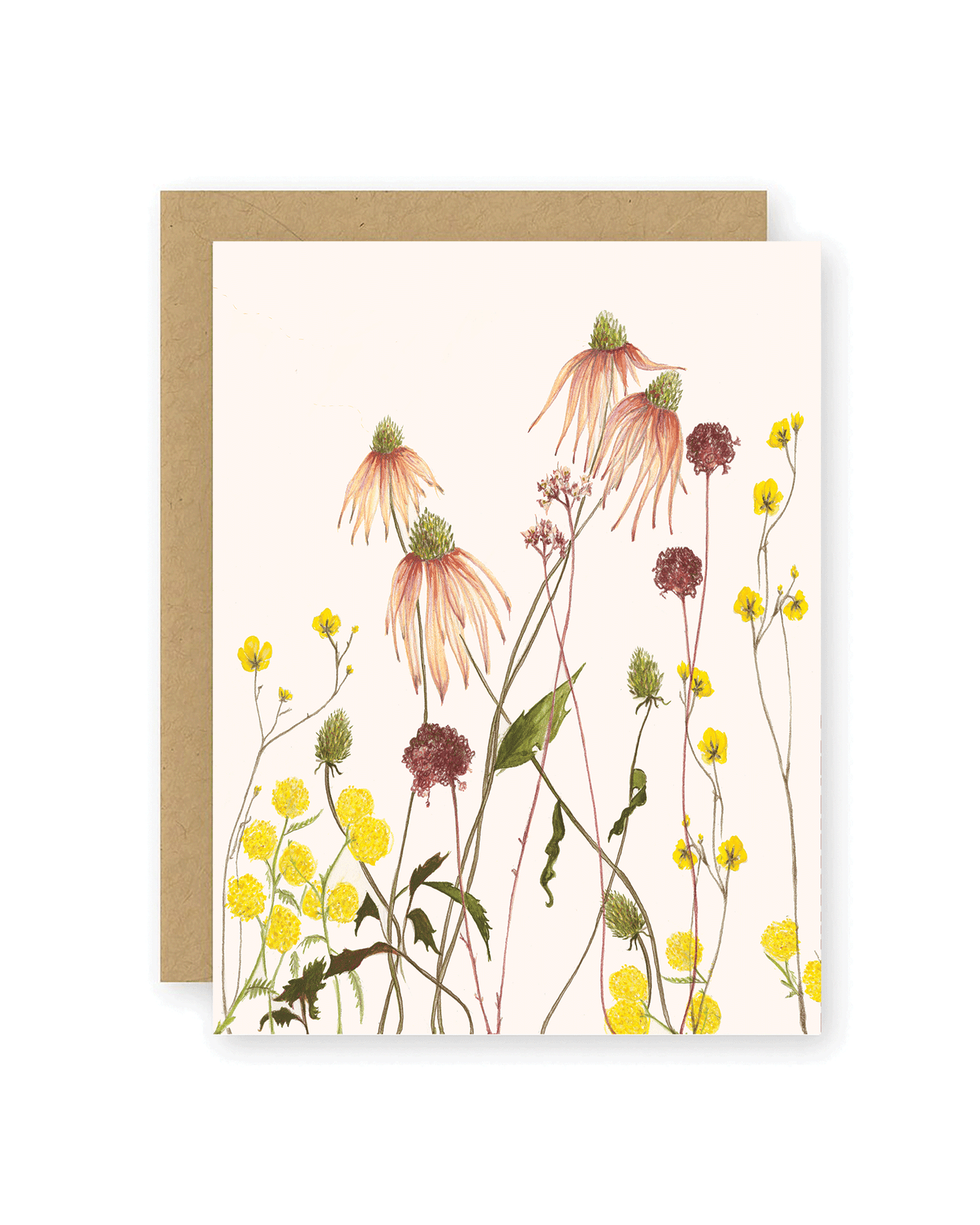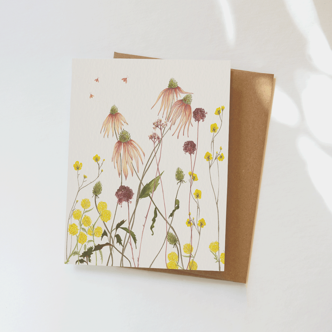 A2 (4.25” x 5.5”) Kraft envelope included Blank inside Printed with vegetable and algae inks Produced locally in a solar/wind powered facility Printed on 100% Post-Consumer Waste, FSC-certified stock