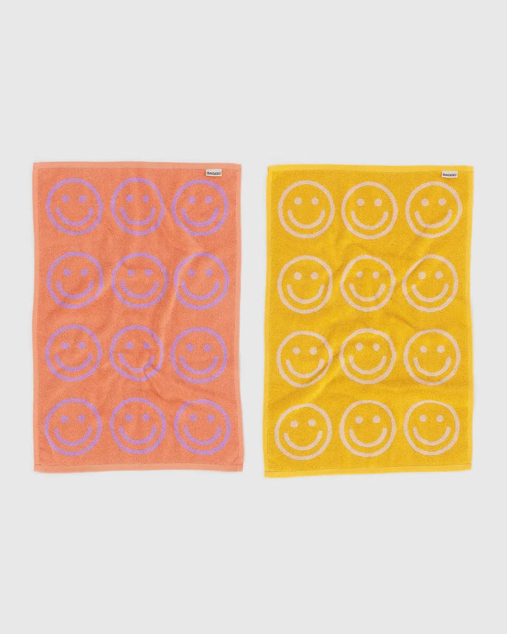• A set of two soft, reversible, organic cotton hand towels