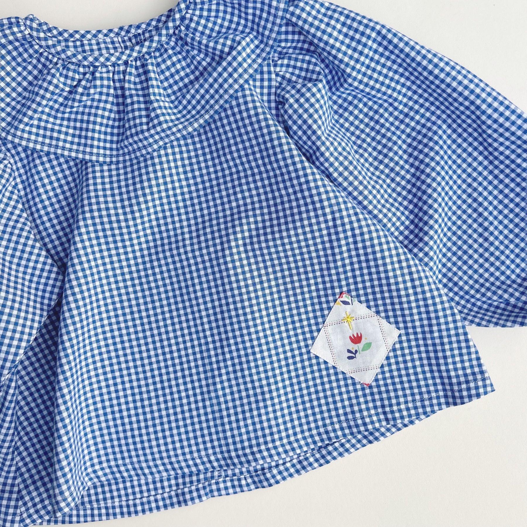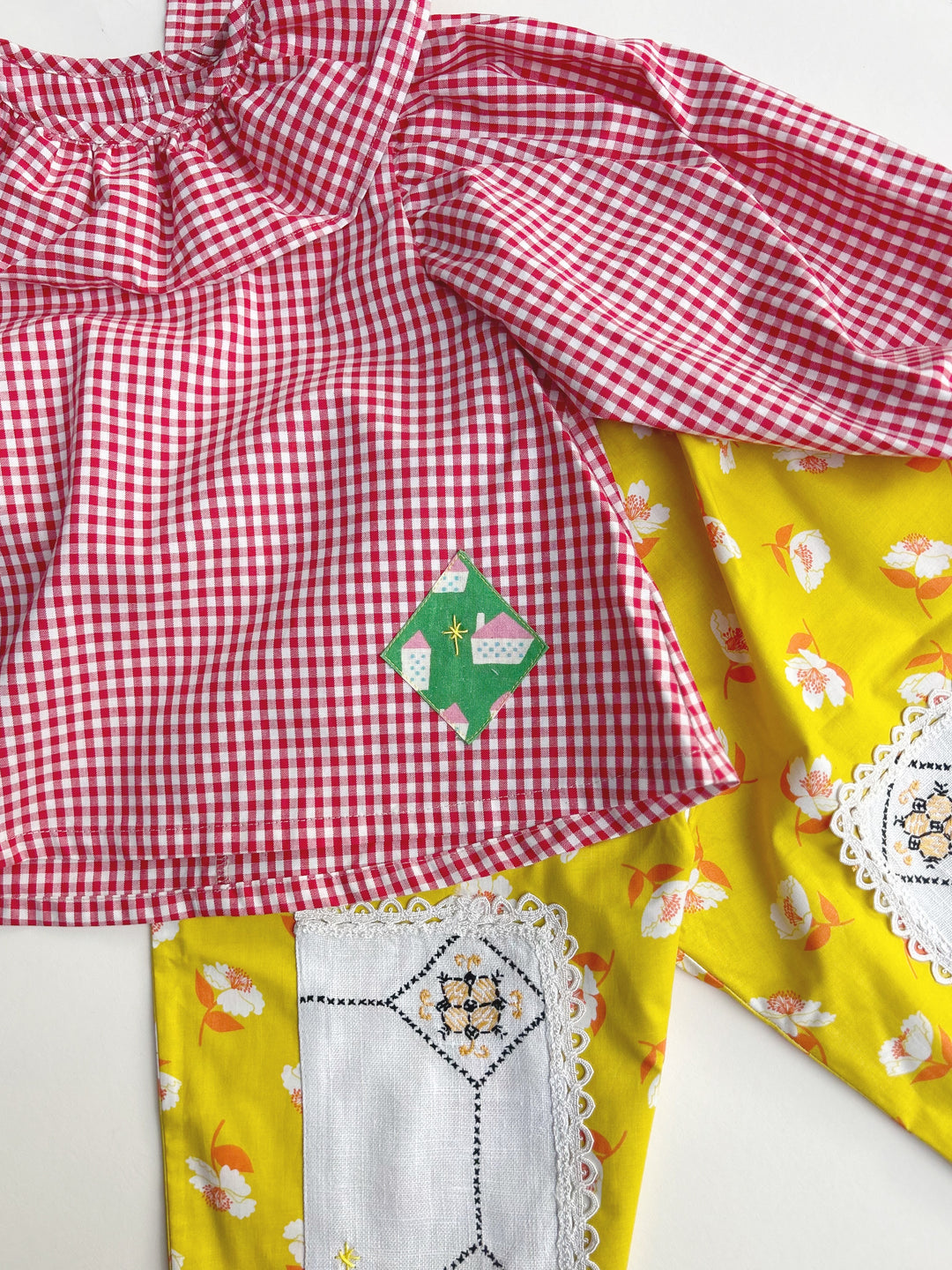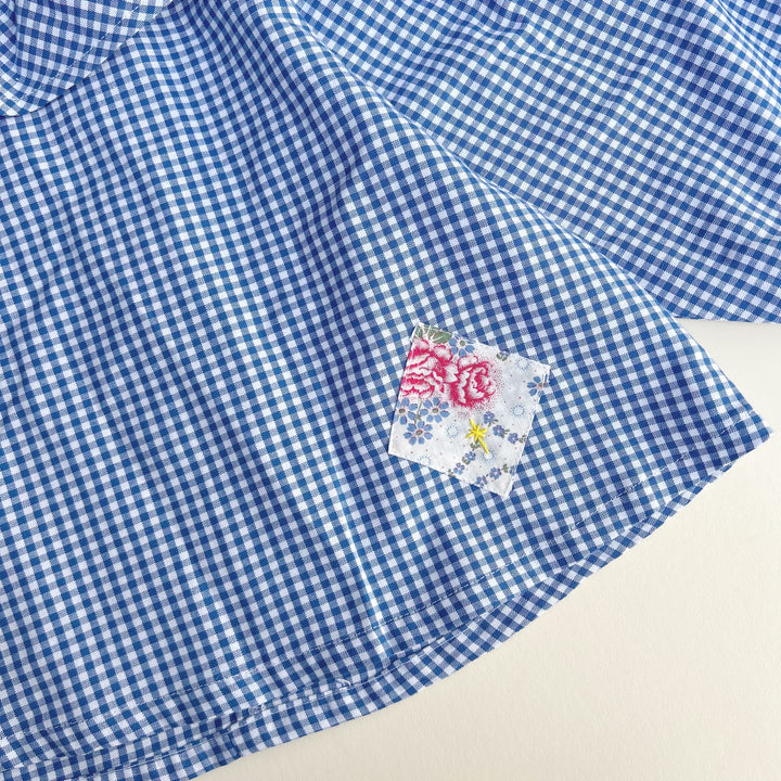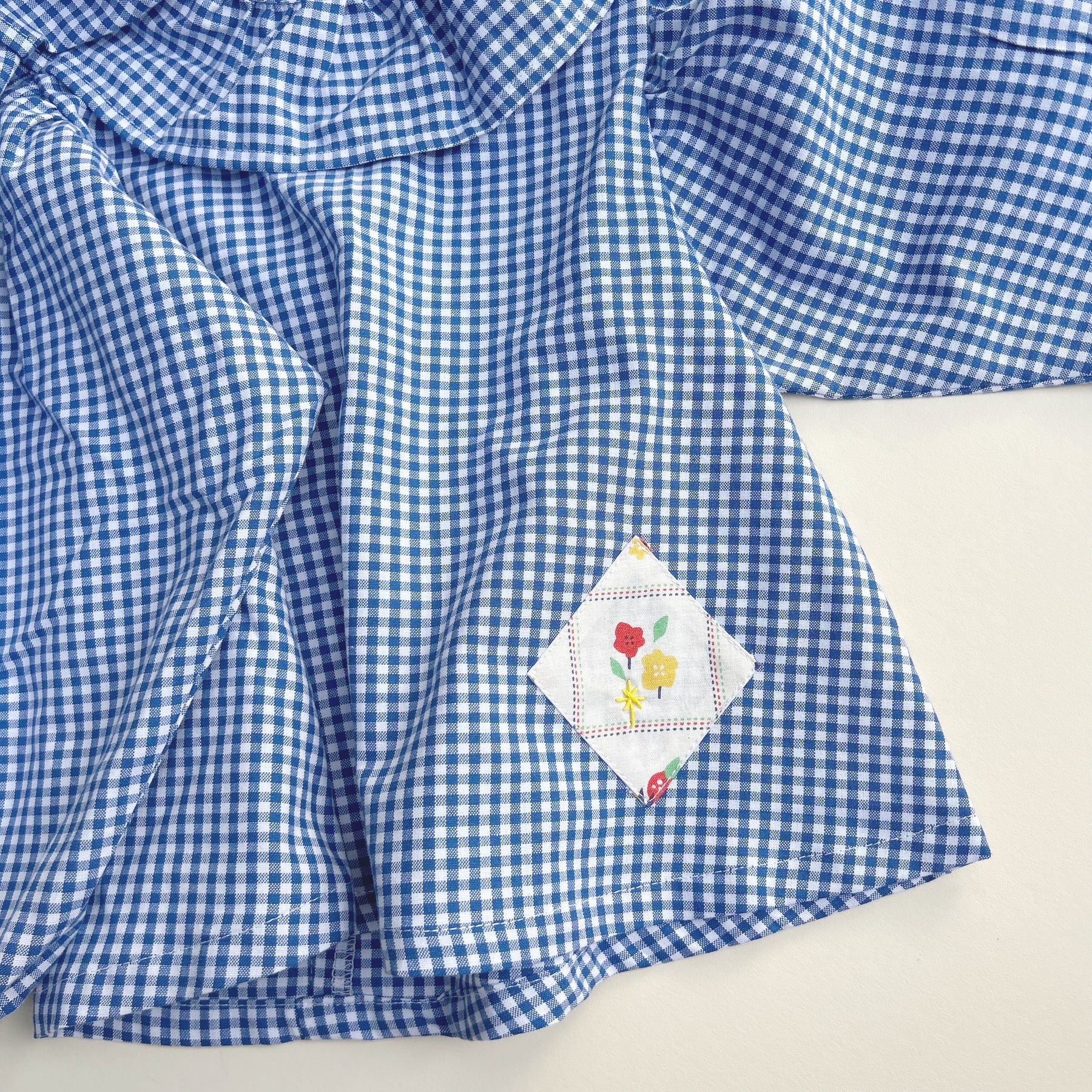 Vintage patch detail -- all the same but one floral patch on blue gingham in size 2-4 years (please note in order comments if you'd like this one!)