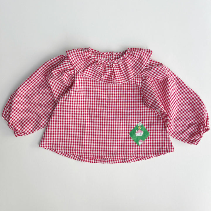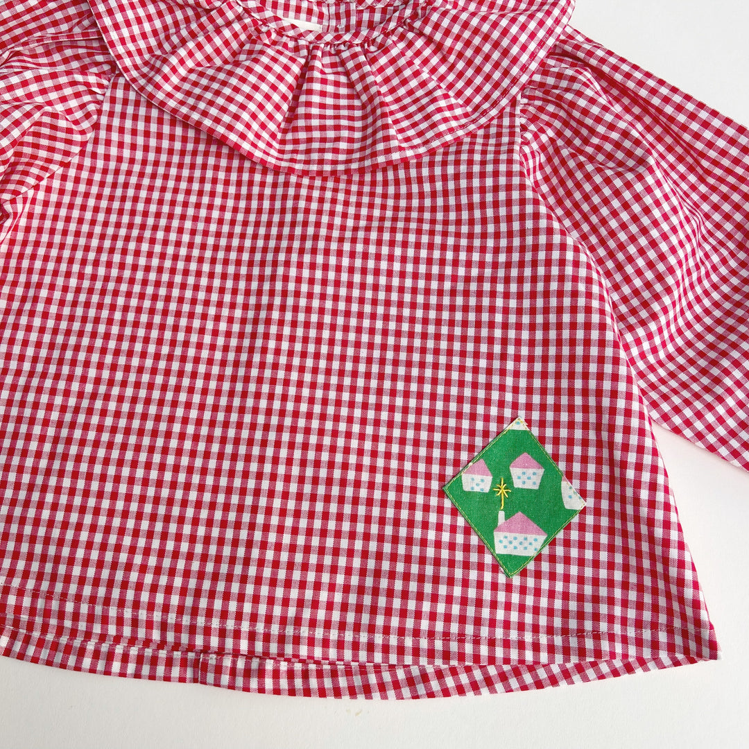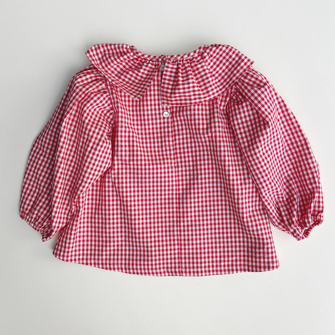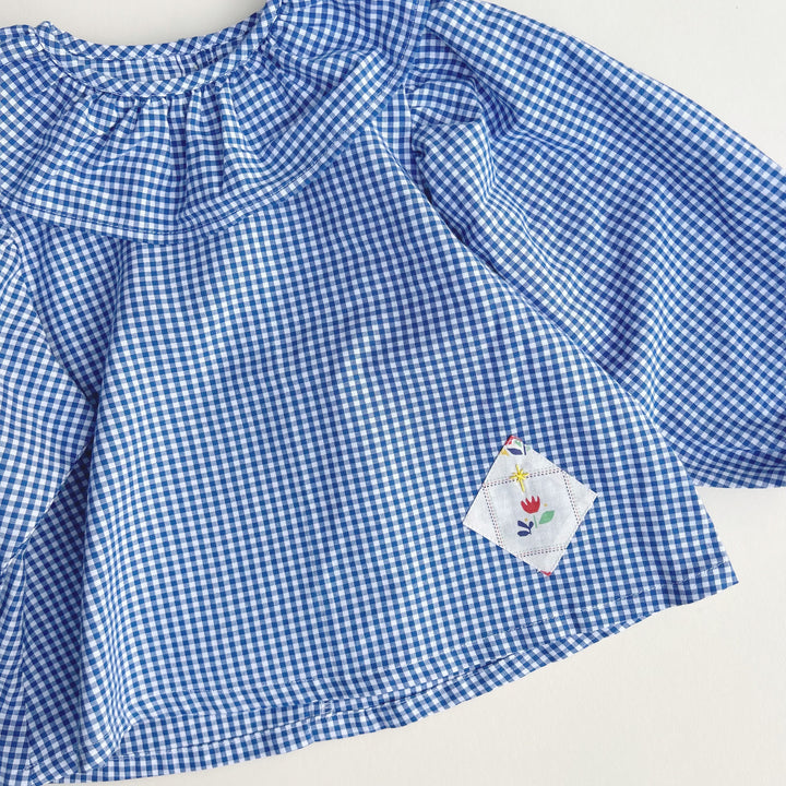 Chic and comfy blouse with playful blouson sleeves in Cottage Gingham fabric