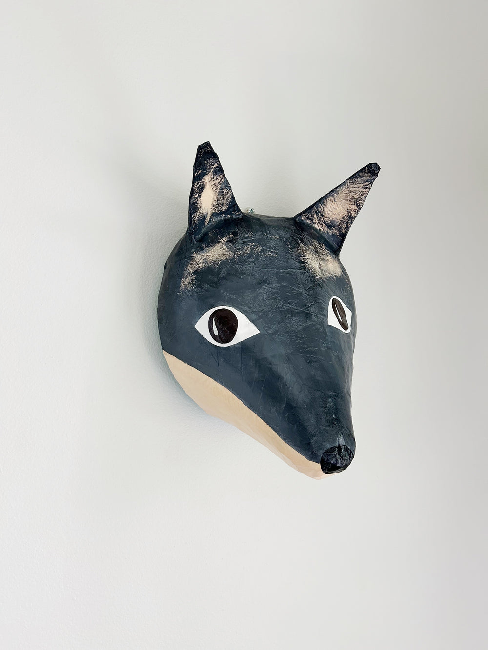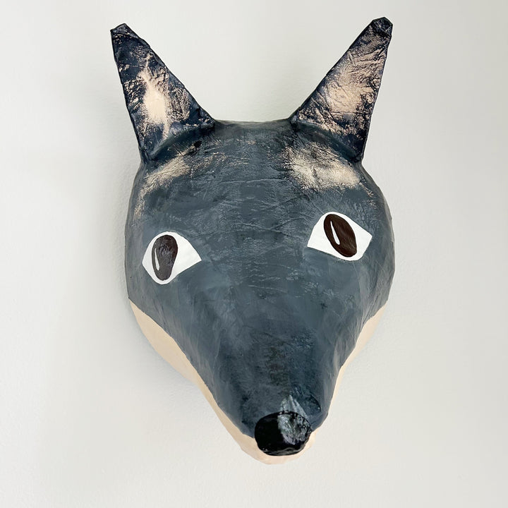 Meet Óscar, a friendly wolf looking for a home. This sweet papier-mâché wolf animal head is handmade by Marcia Barbosa of A Zoo In My Wall.