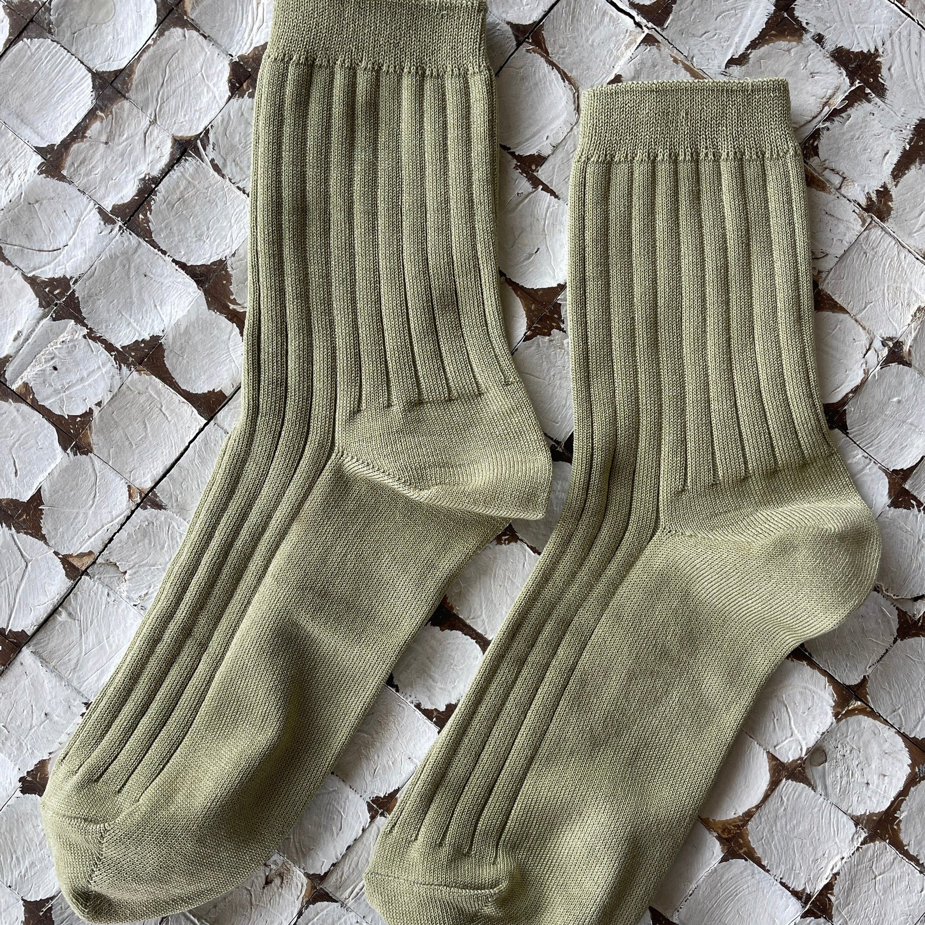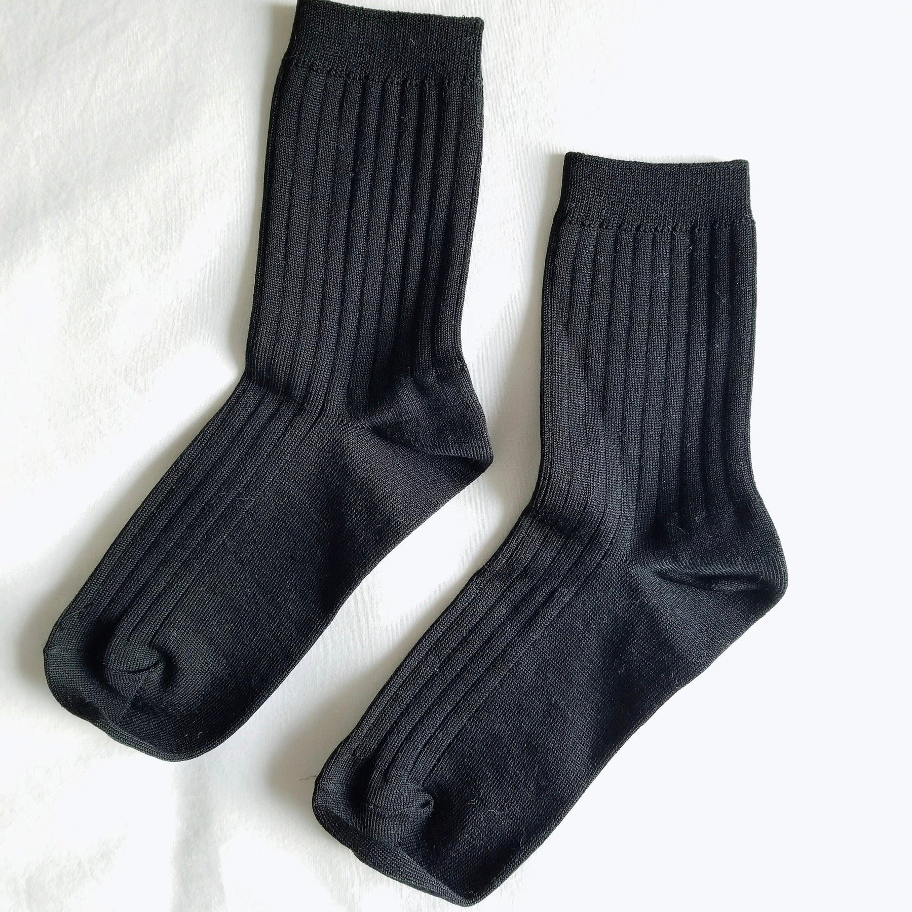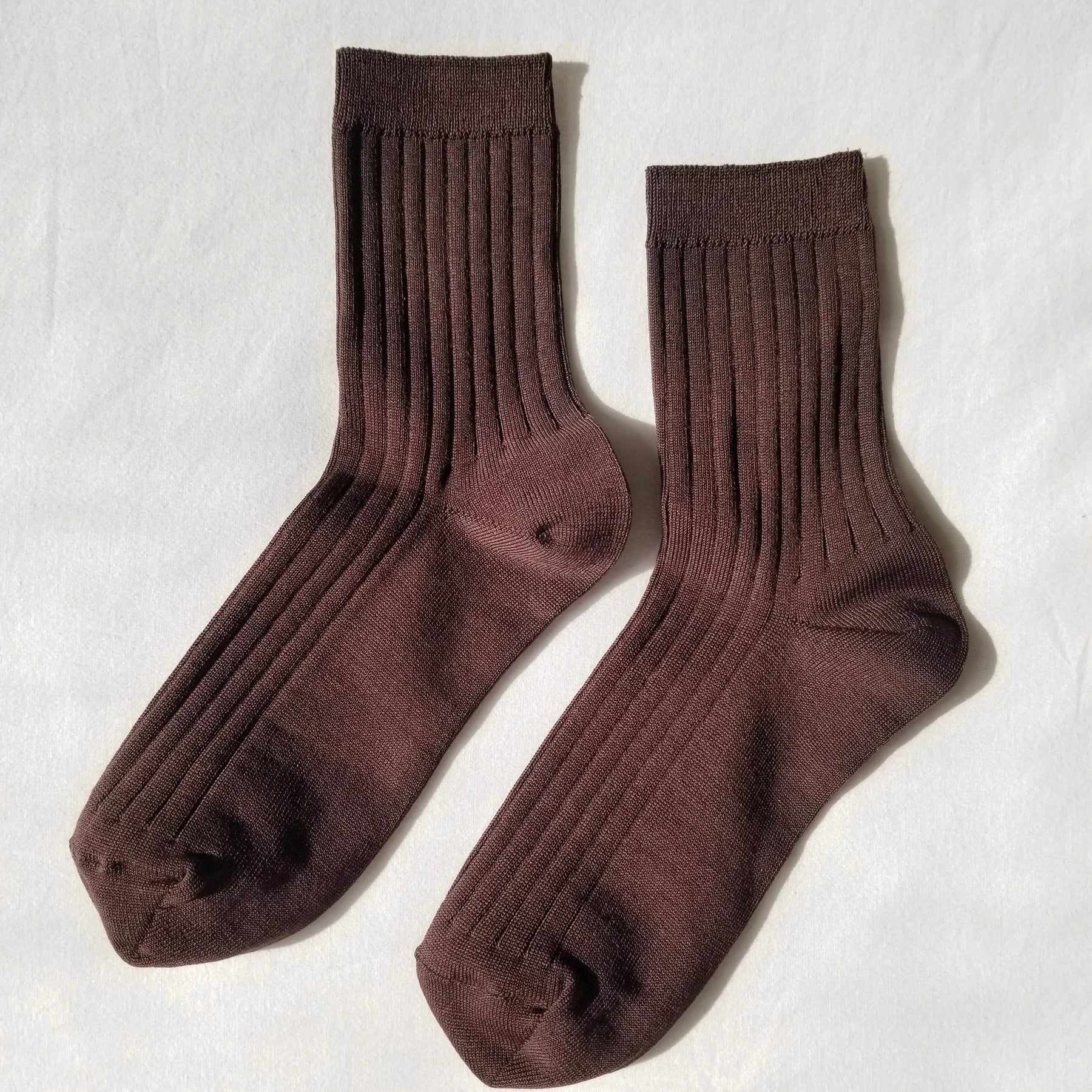 The original Le Bon Shoppe sock! This is the sock that they felt was missing. Classically ribbed, perfect height, breathable cotton blend yarn. They will pair with any shoe, sandals, sneakers, mules, clogs, boots, they are your go to sock!