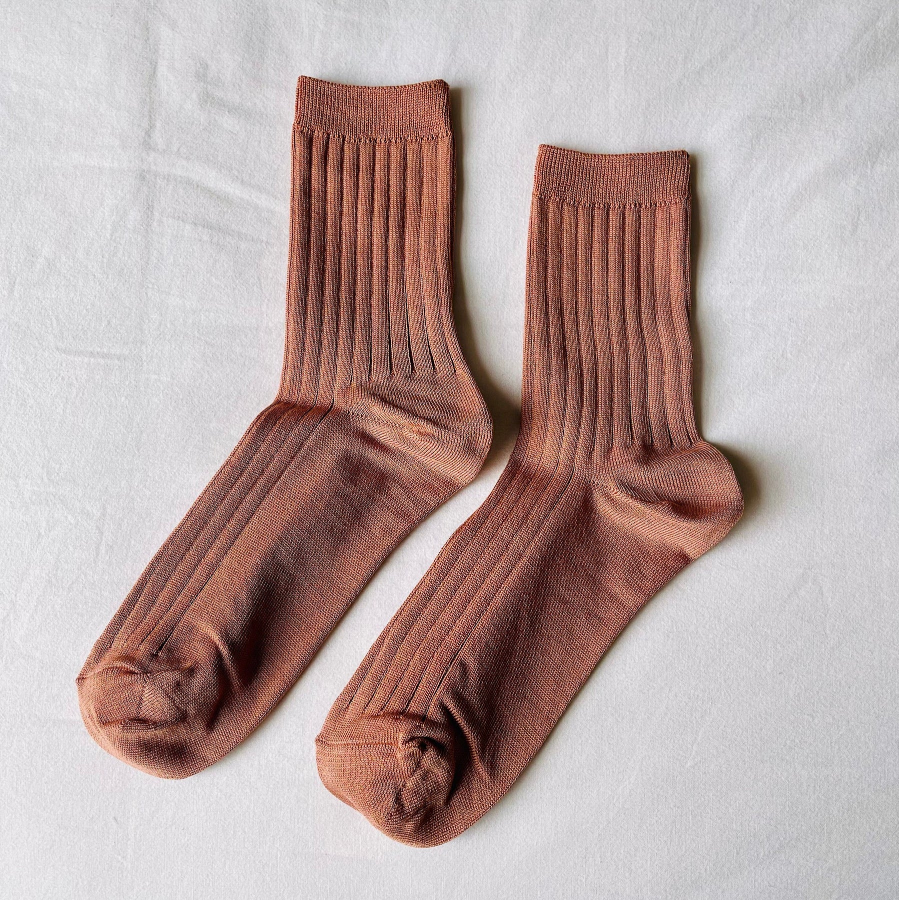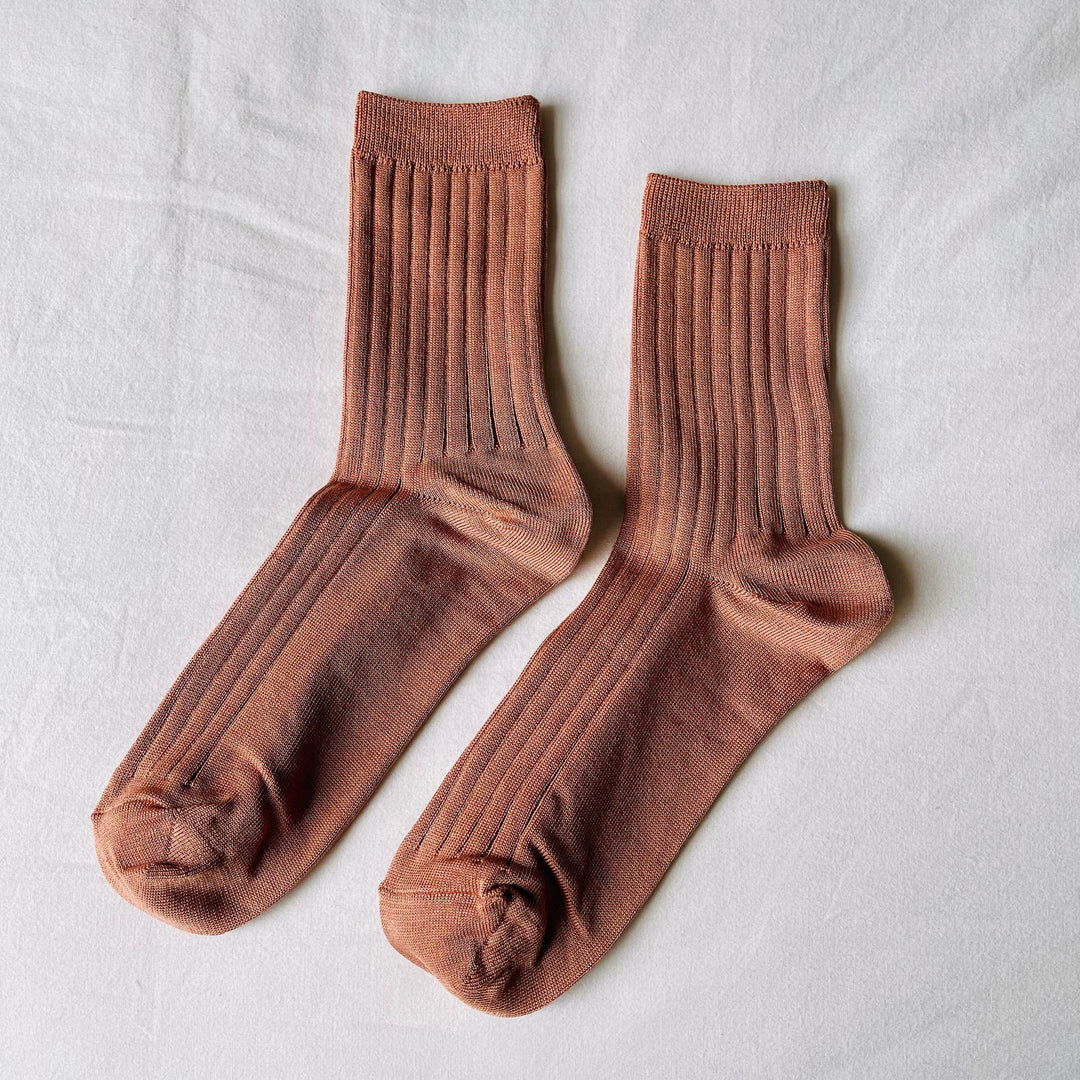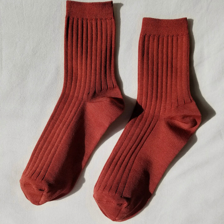 The original Le Bon Shoppe sock! This is the sock that they felt was missing. Classically ribbed, perfect height, breathable cotton blend yarn. They will pair with any shoe, sandals, sneakers, mules, clogs, boots, they are your go to sock!