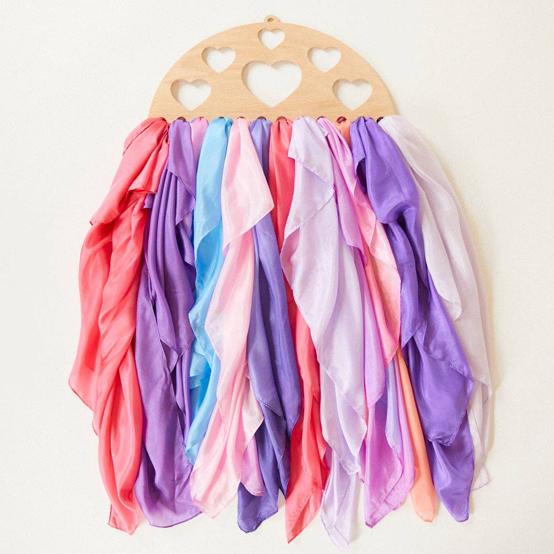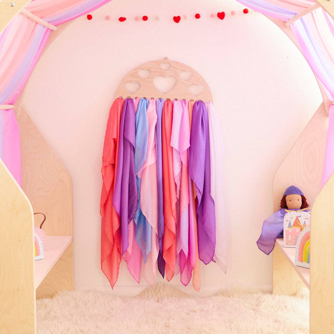 Large Playsilk Display for homes or classrooms! Simply hang on a wall and slip your Playsilks through! Easy and fun for children learning to care for their toys and encourages young ones to keep playrooms tidy.