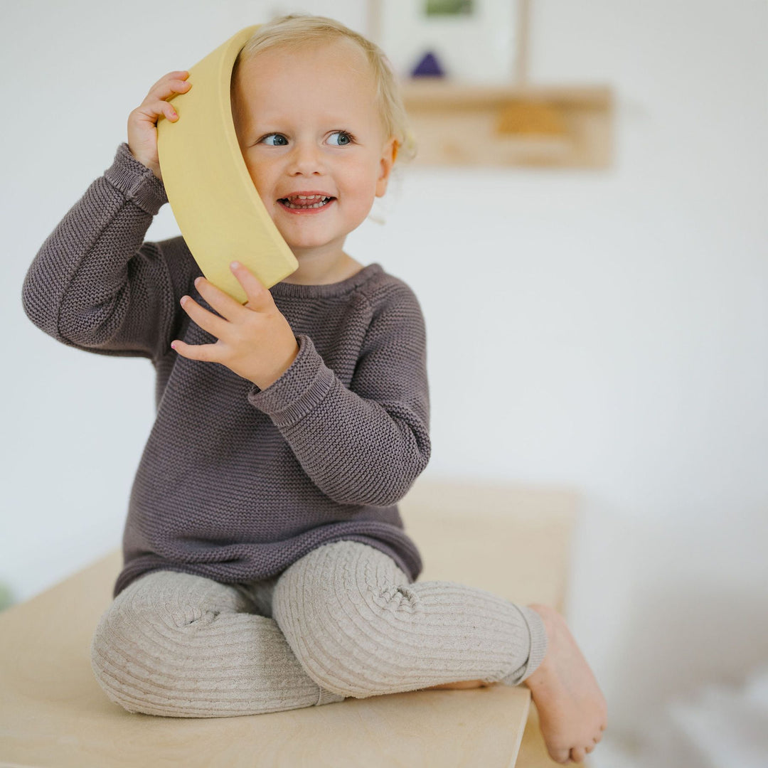 This Large Rainbow is a real all-rounder. Of course it looks great on the shelf, but its full potential only really comes to light when you take it apart into its individual parts and then just get started. It is ready for stacking and building all kinds of fantasy landscapes, creating small play worlds, inventing easy or tricky ball tracks, versatile use in role play, laying fun flatlays, getting to know and sorting colours and letting out energy during active movement play. That may sound like an exaggeration, but it's not - we promise! ;)