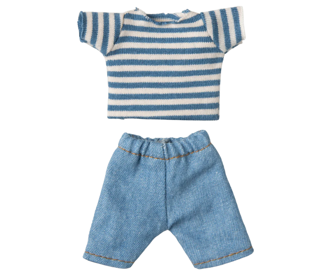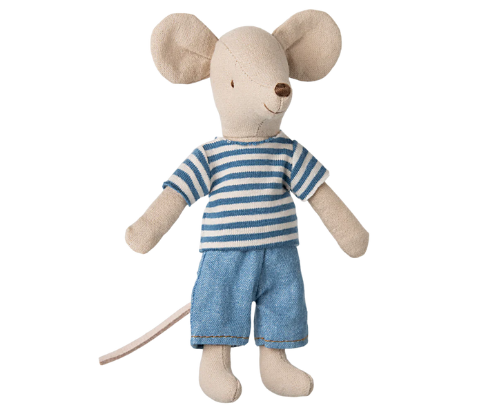 This mouse is called LouiMax and he is a really adventurous guy. He wears a blue striped shirt and a pair of denim pants. The mouse has magnets in his hands and is sold in a decoration box. The mouse is size big brother.